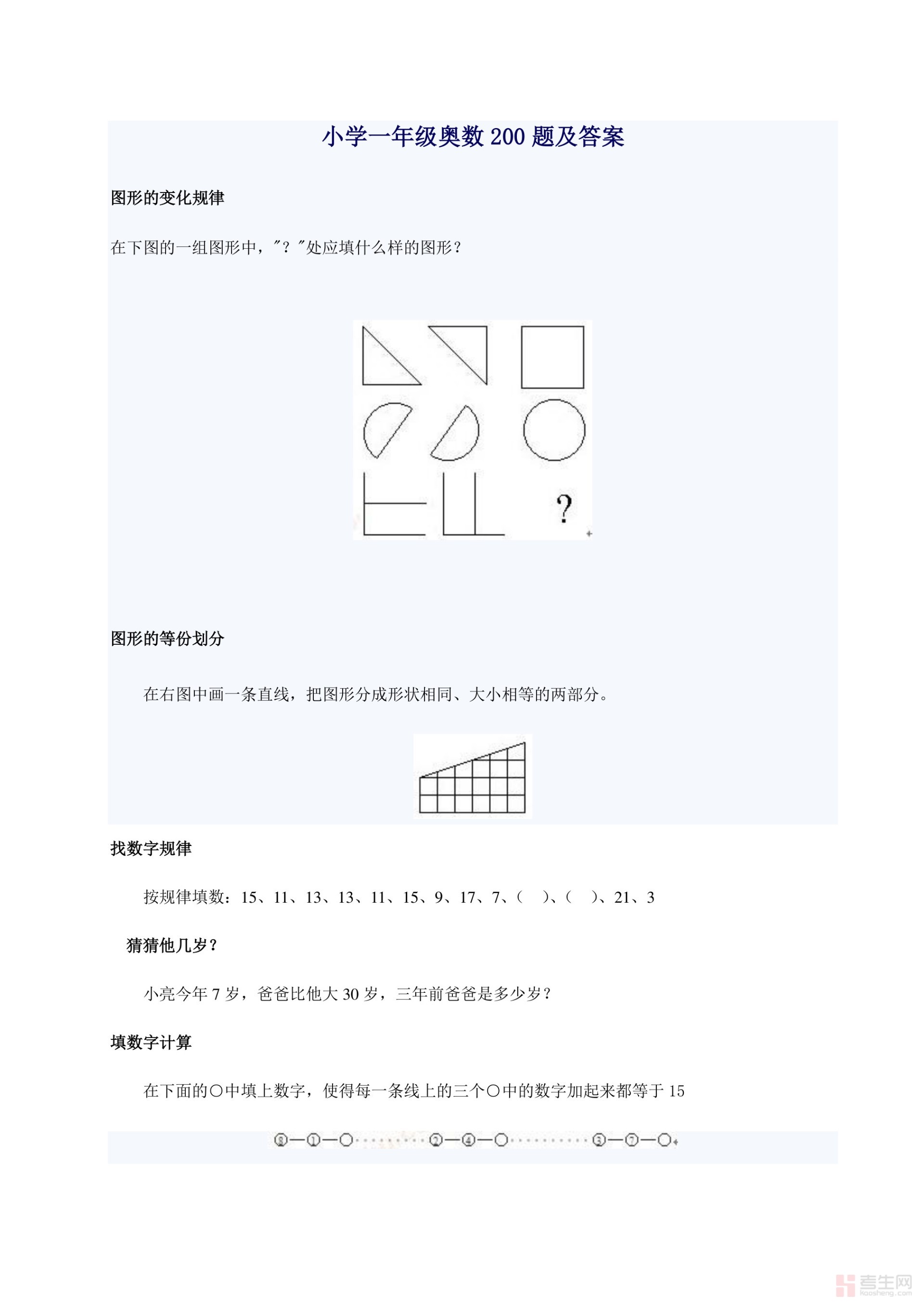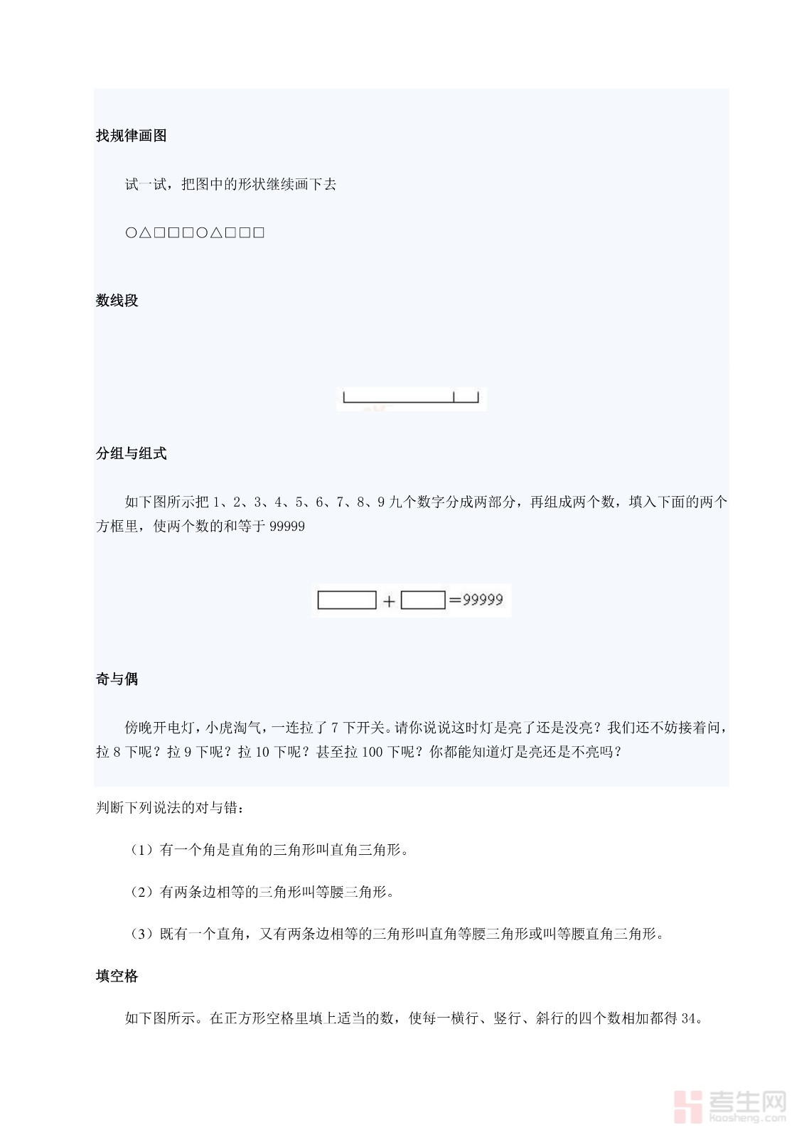 小学一年级奥数学习-第四讲-看图找规律(一年级奥数)
