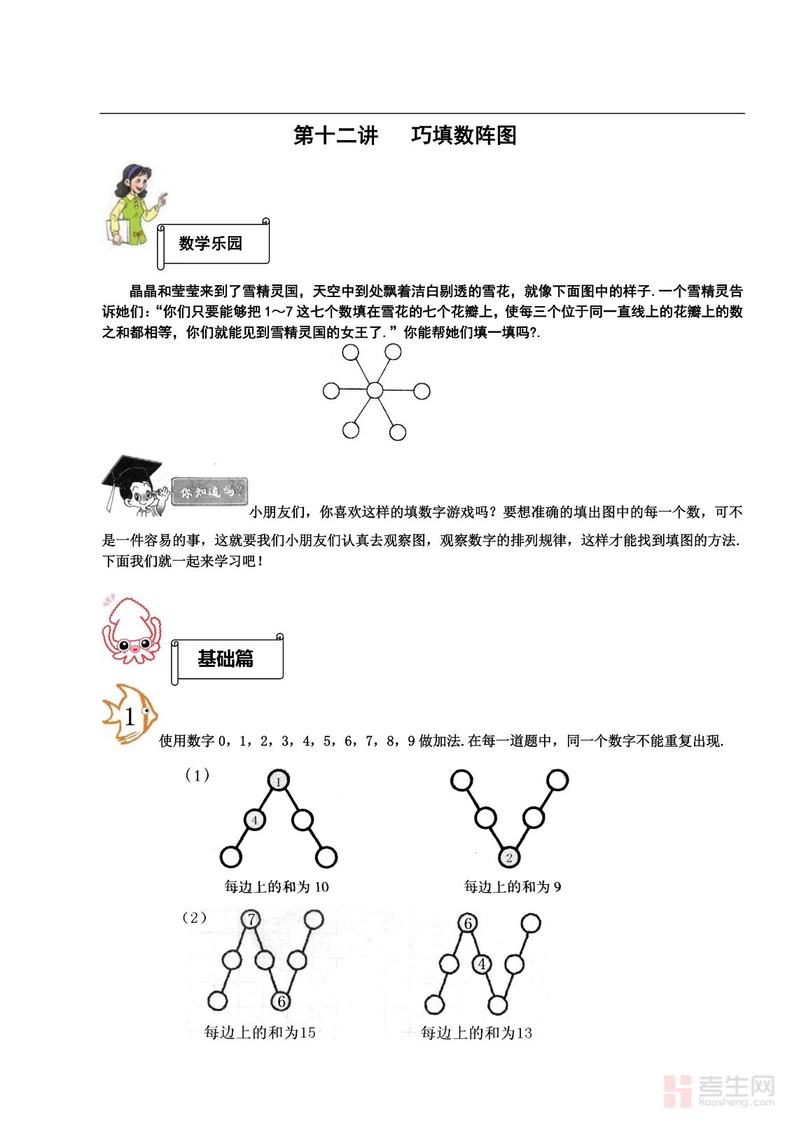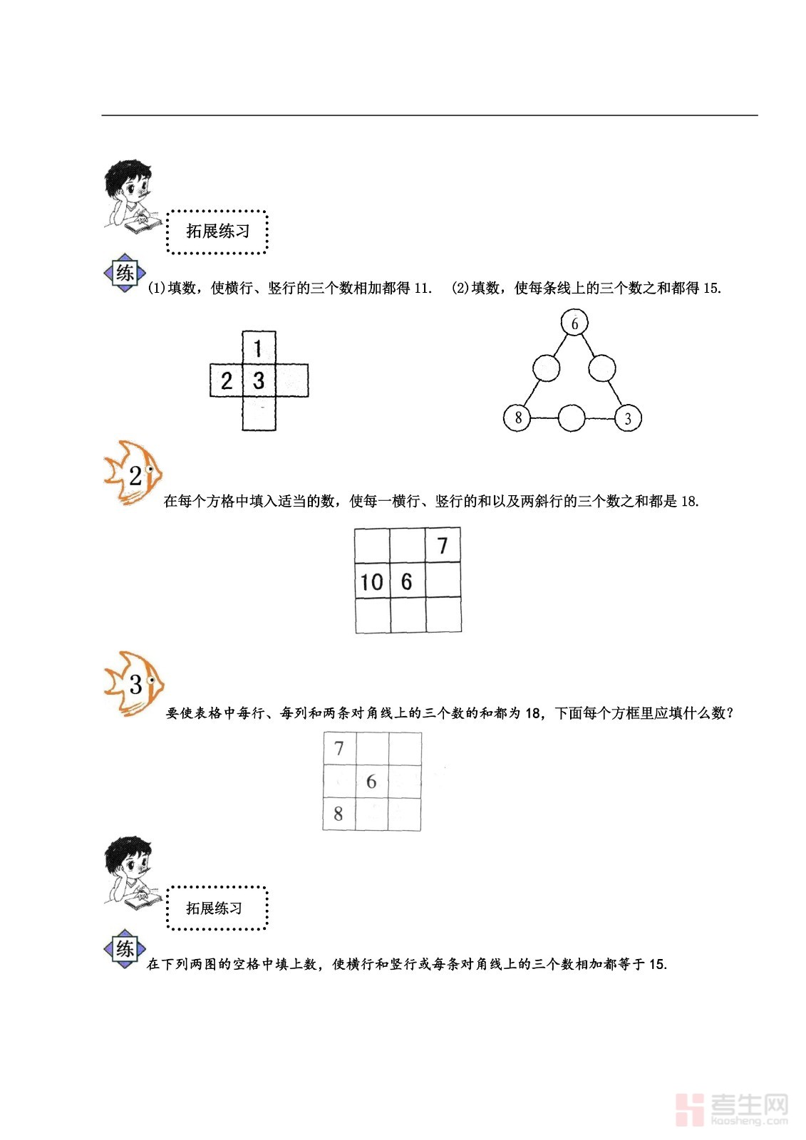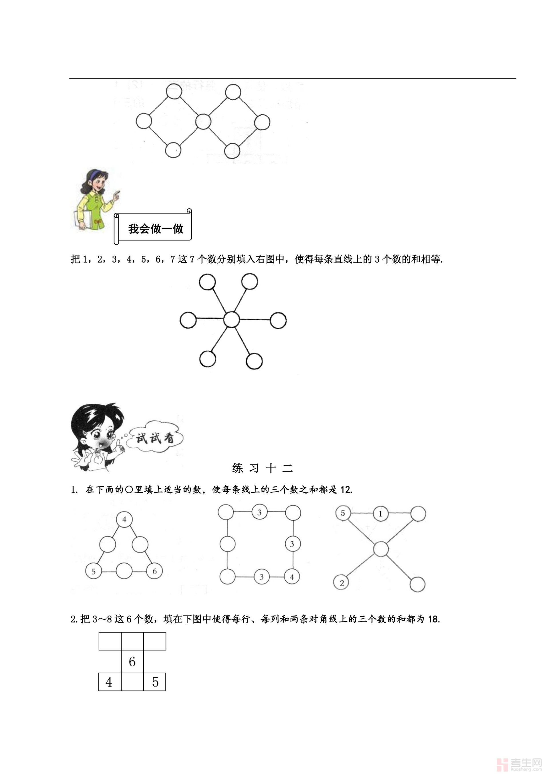 小学一年级奥数学习-一年级-教案-第十二讲-巧填数阵图-学生