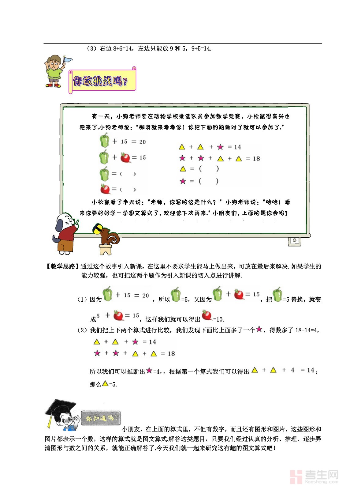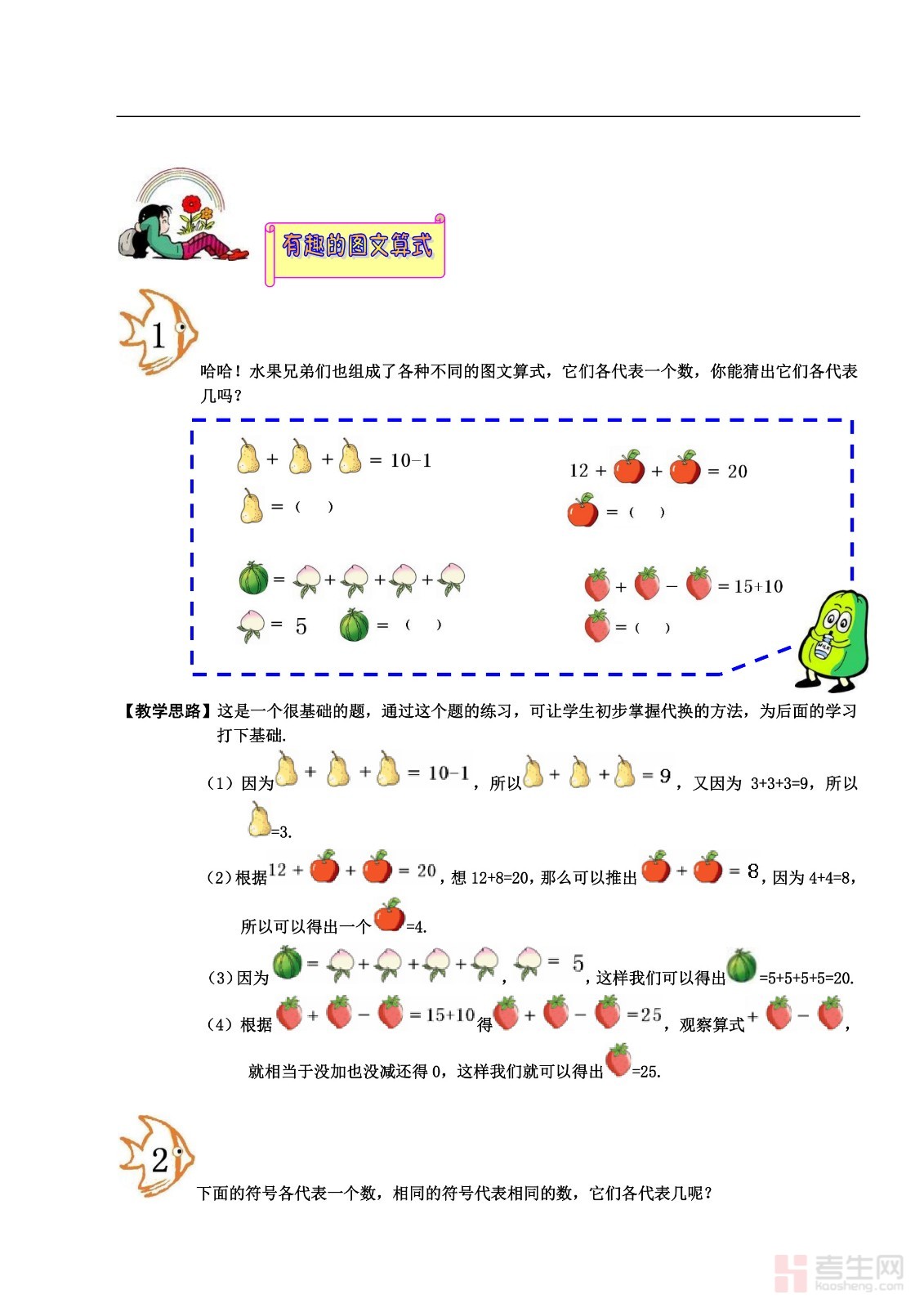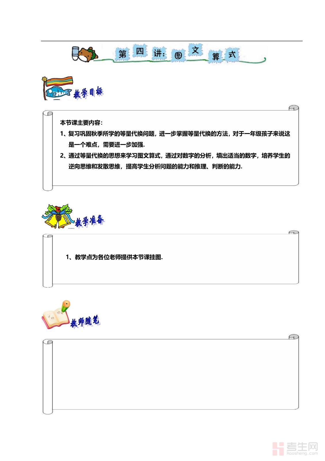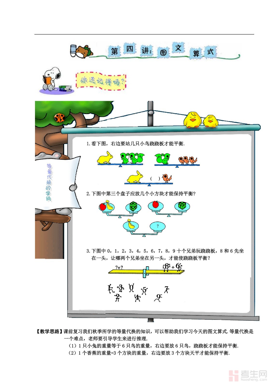 小学一年级奥数学习-一年级-教案-第四讲-等量代换