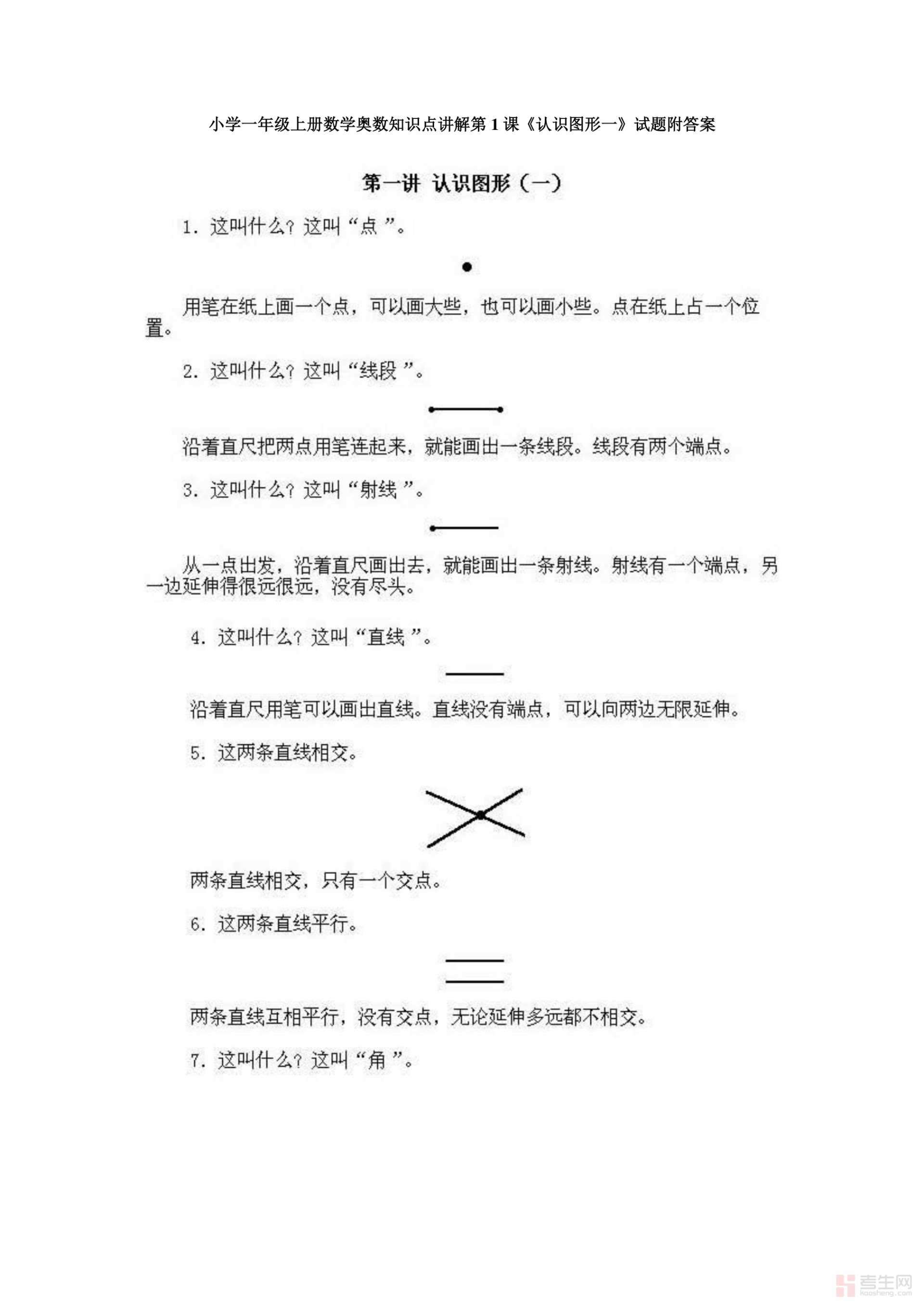 小学一年级上册数学奥数知识点讲解第1课《认识图形一》试题附答案