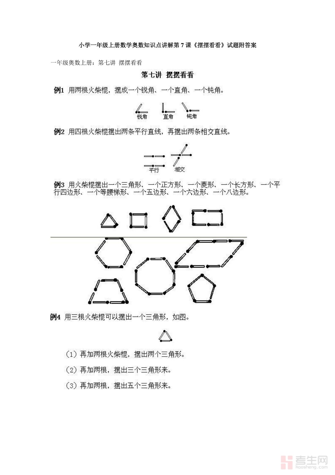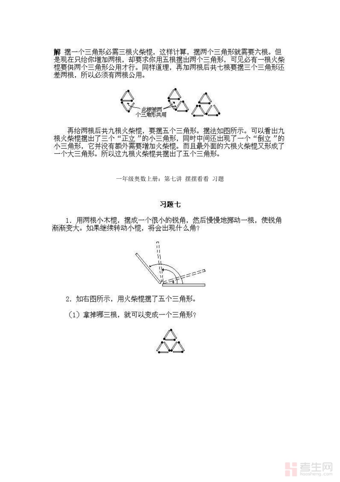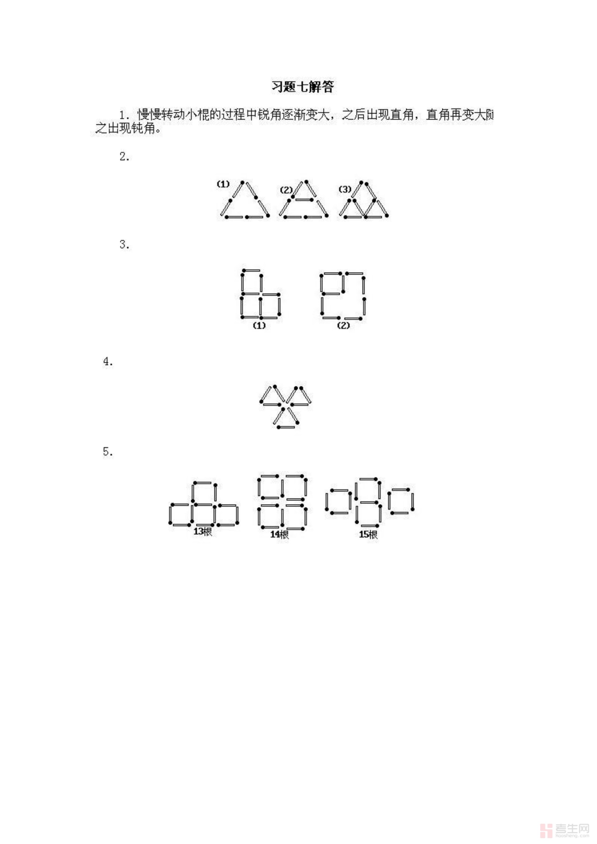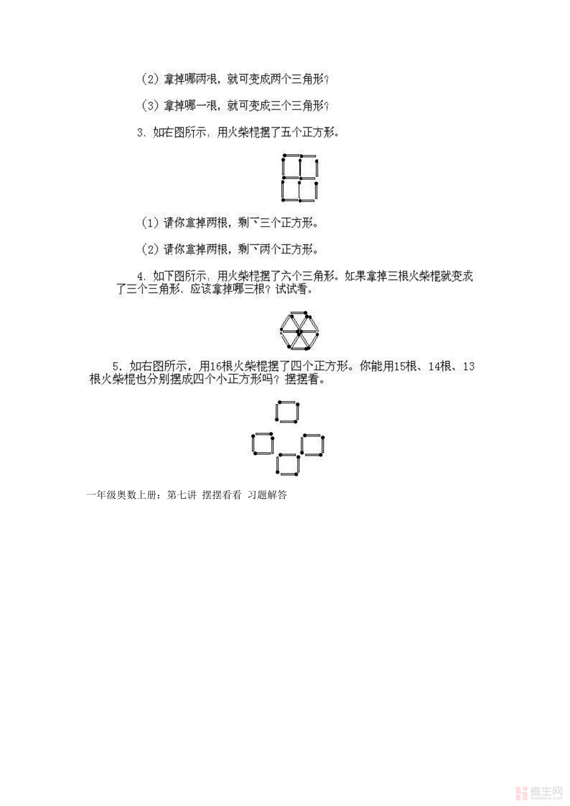 小学一年级下册数学奥数知识点讲解第14课《火柴棍游戏1》试题附答案