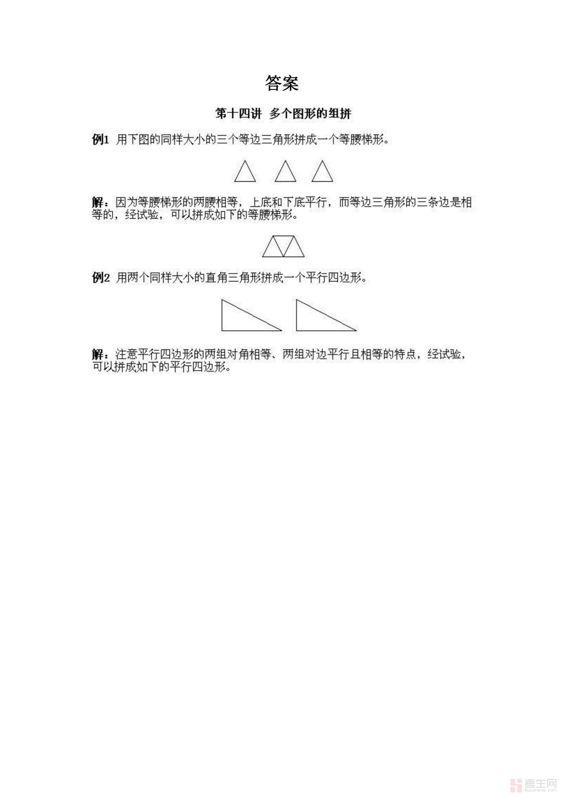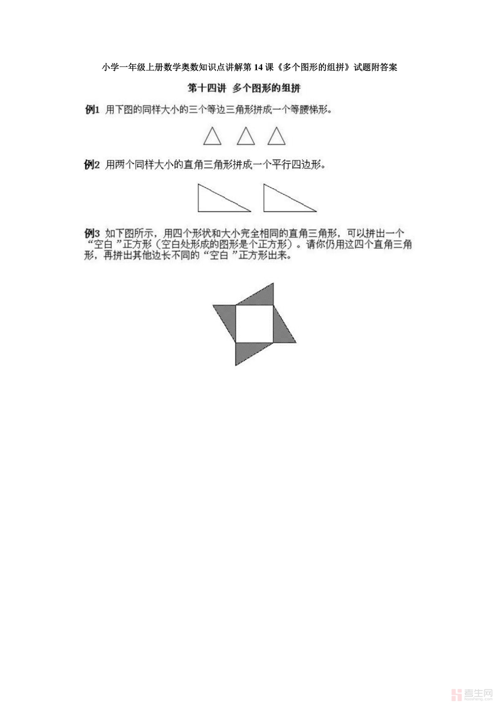 小学一年级上册数学奥数知识点讲解第14课《多个图形的组拼》试题附答案