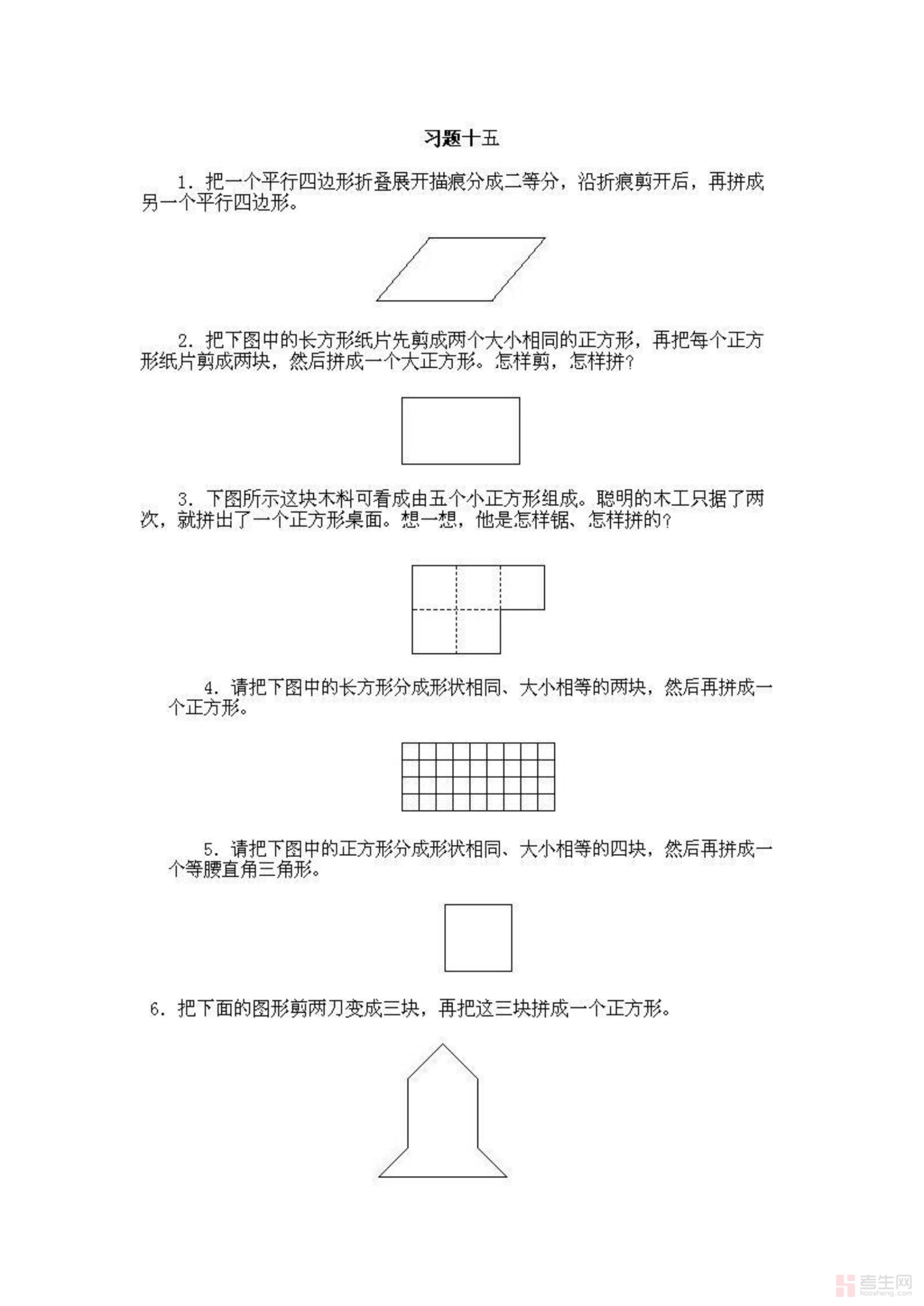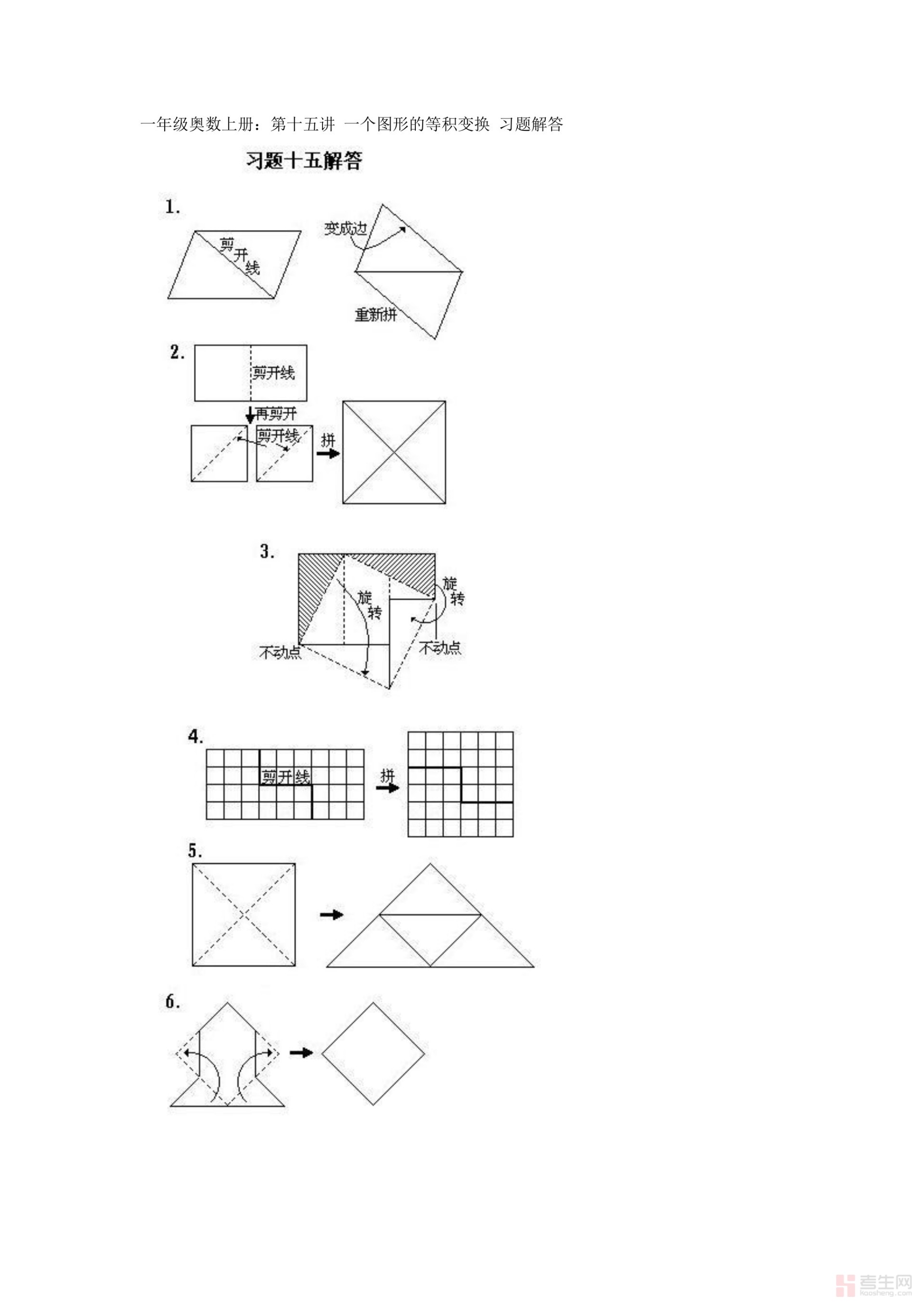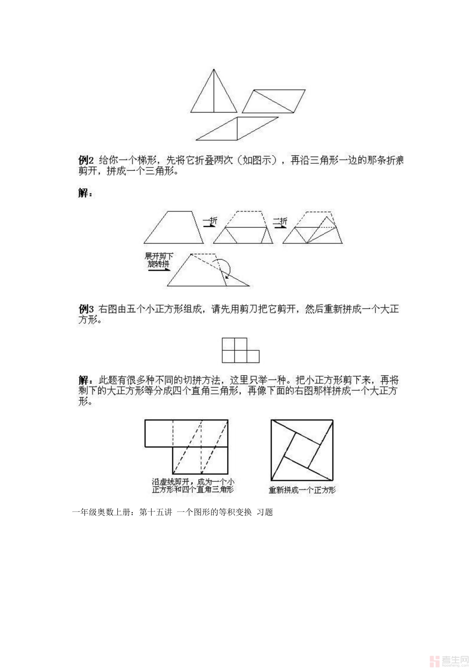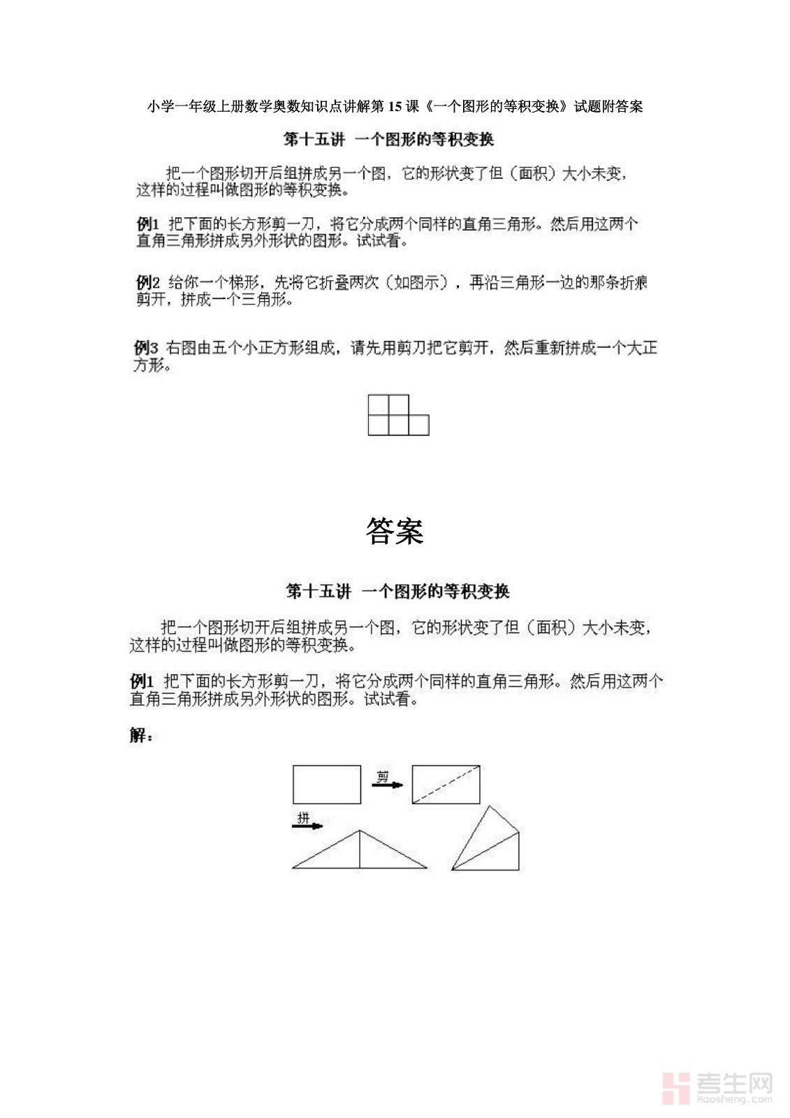 小学一年级上册数学奥数知识点讲解第15课《一个图形的等积变换》试题附答案