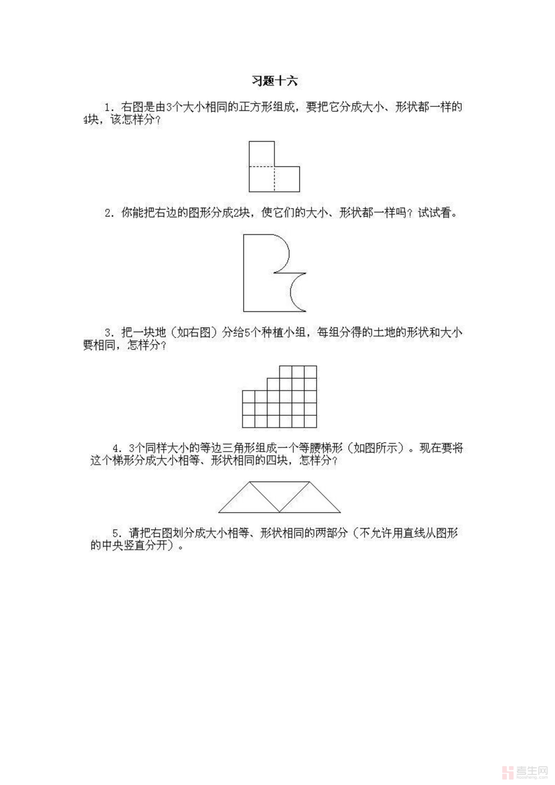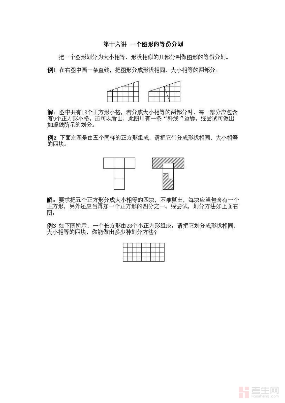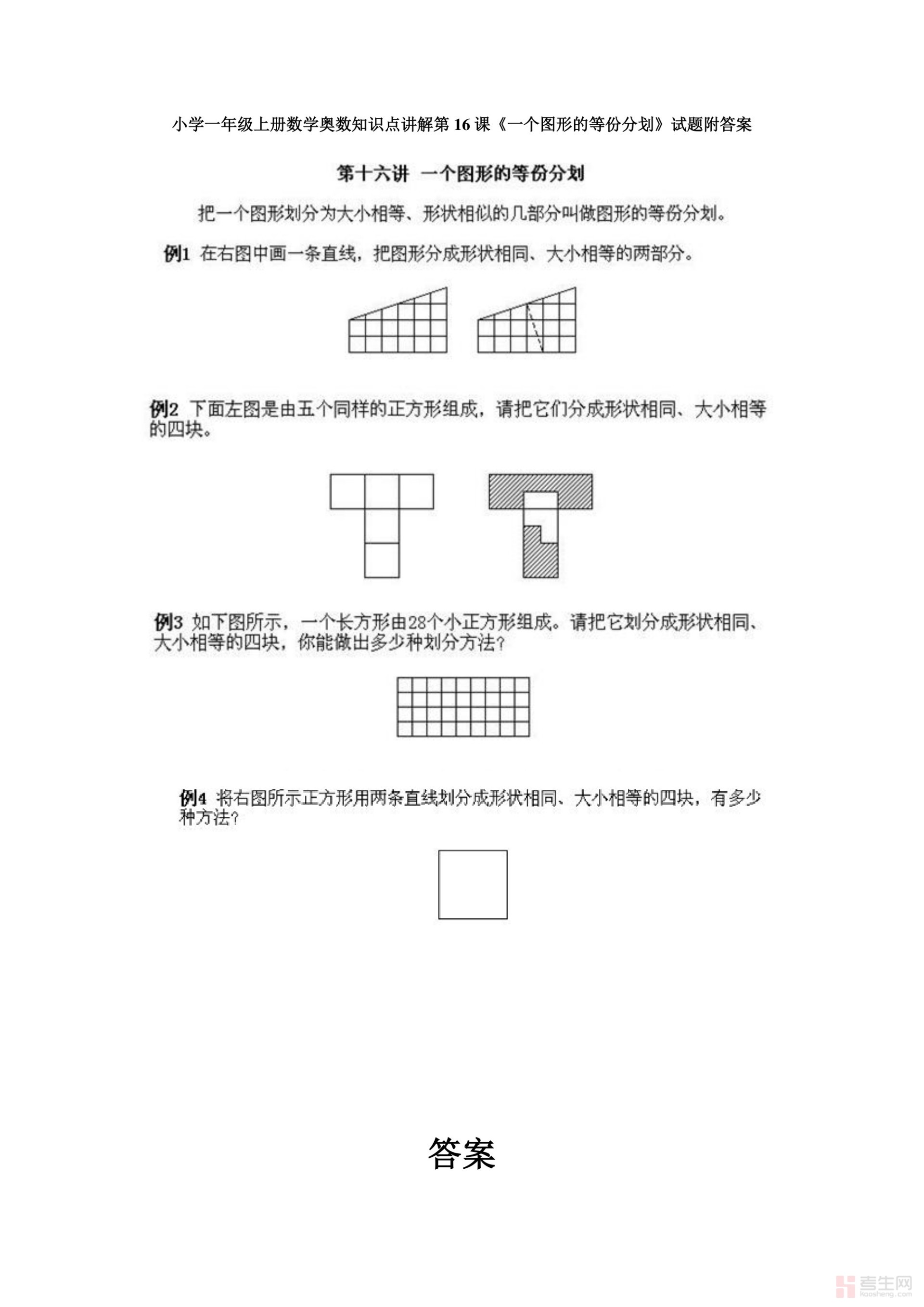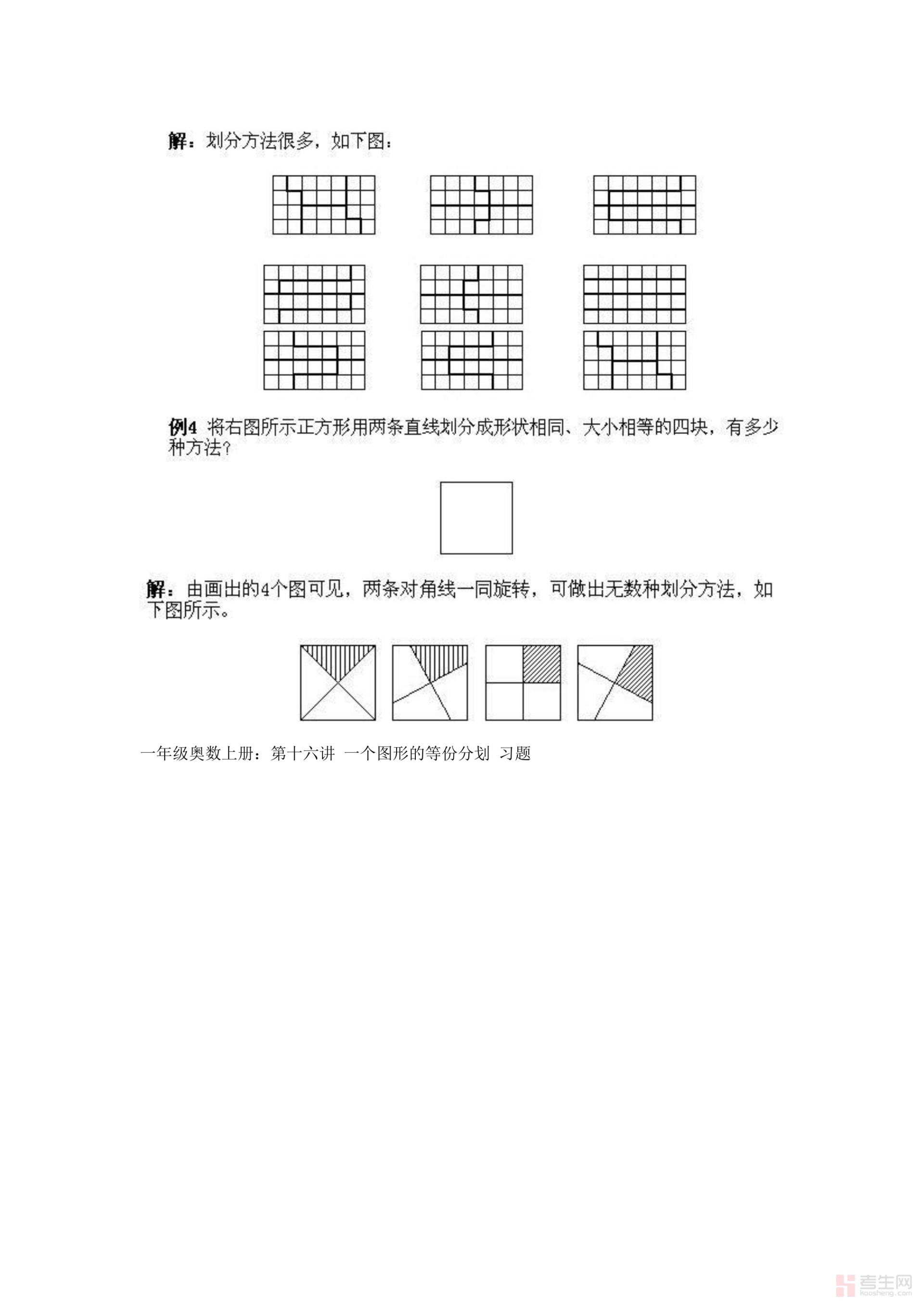 小学一年级上册数学奥数知识点讲解第16课《一个图形的等份分划》试题附答案
