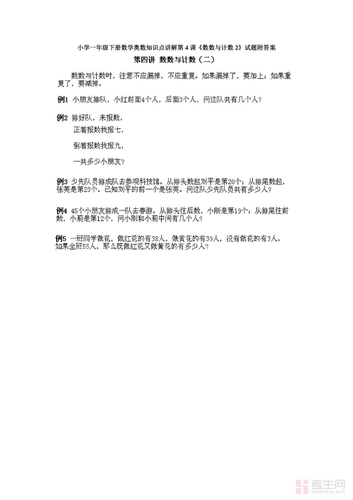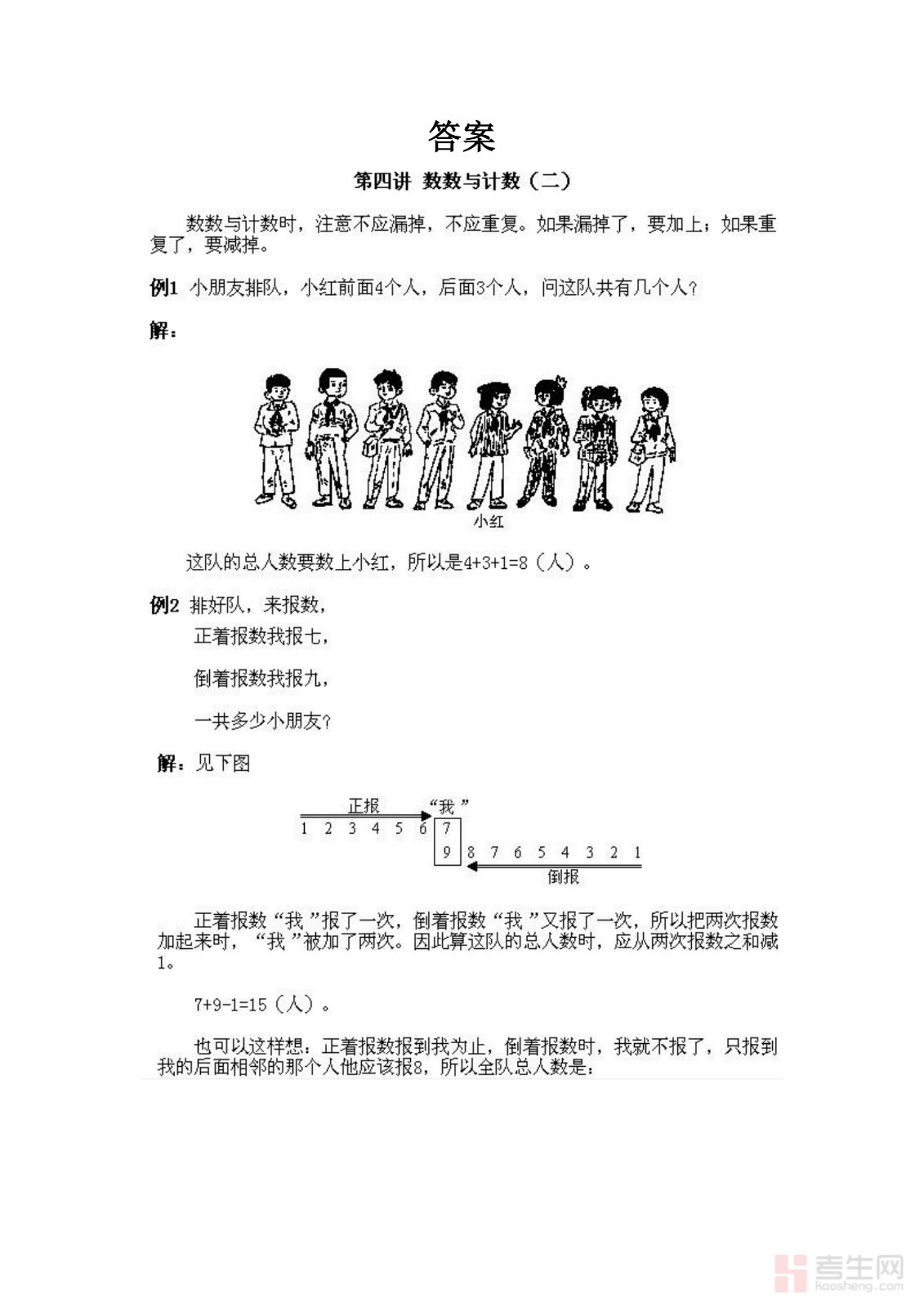 小学一年级下册数学奥数知识点讲解第4课《数数与计数2》试题附答案