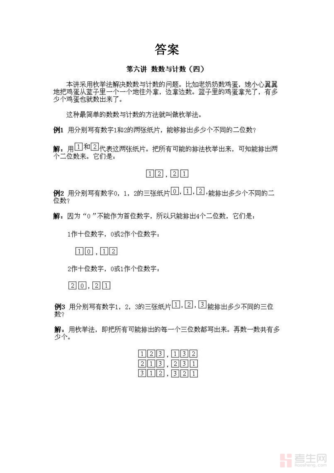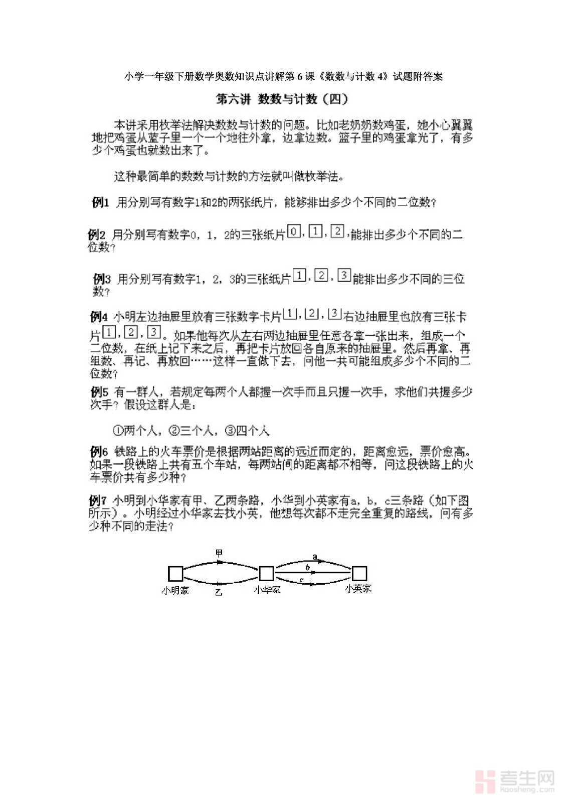 小学一年级下册数学奥数知识点讲解第6课《数数与计数4》试题附答案