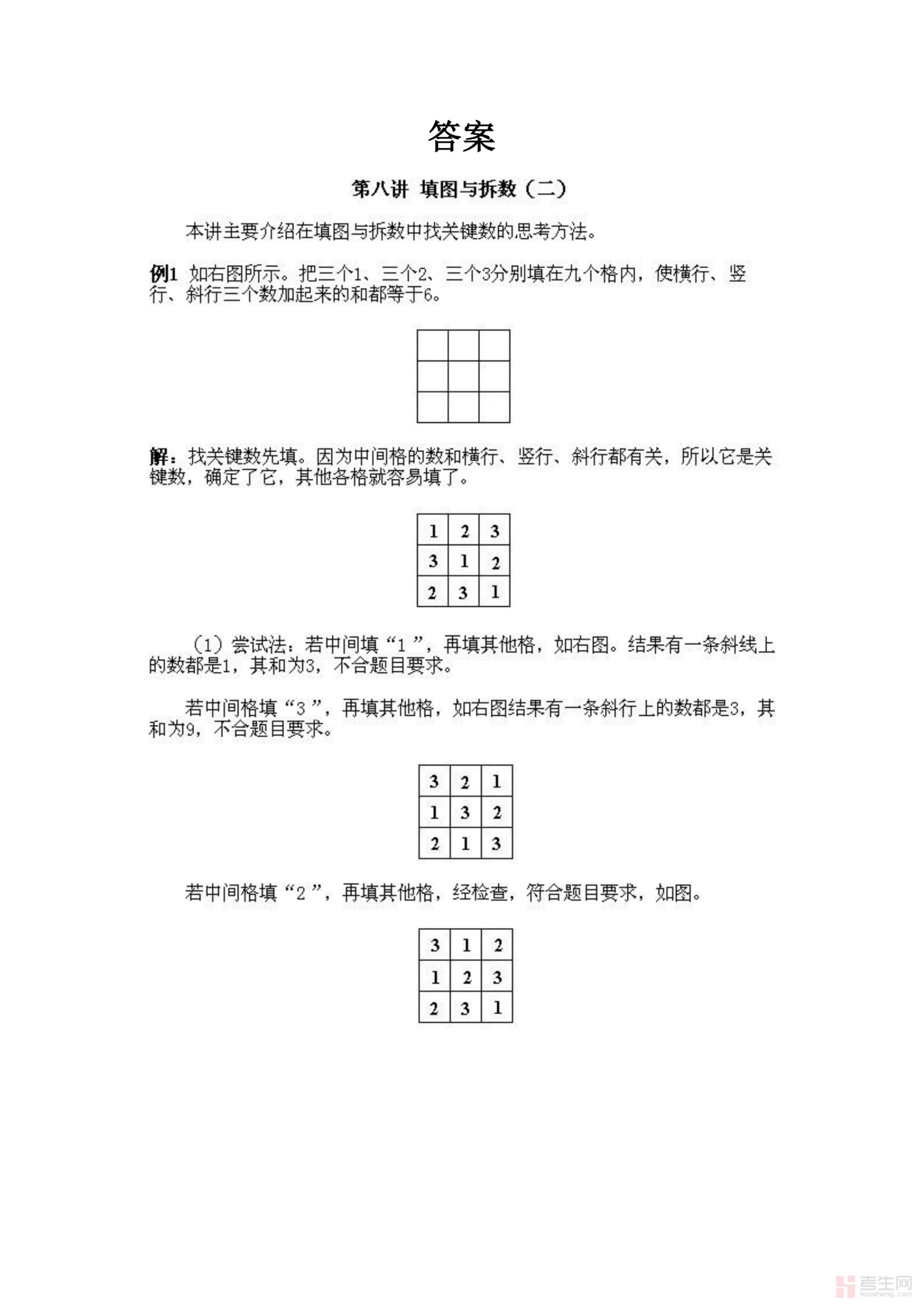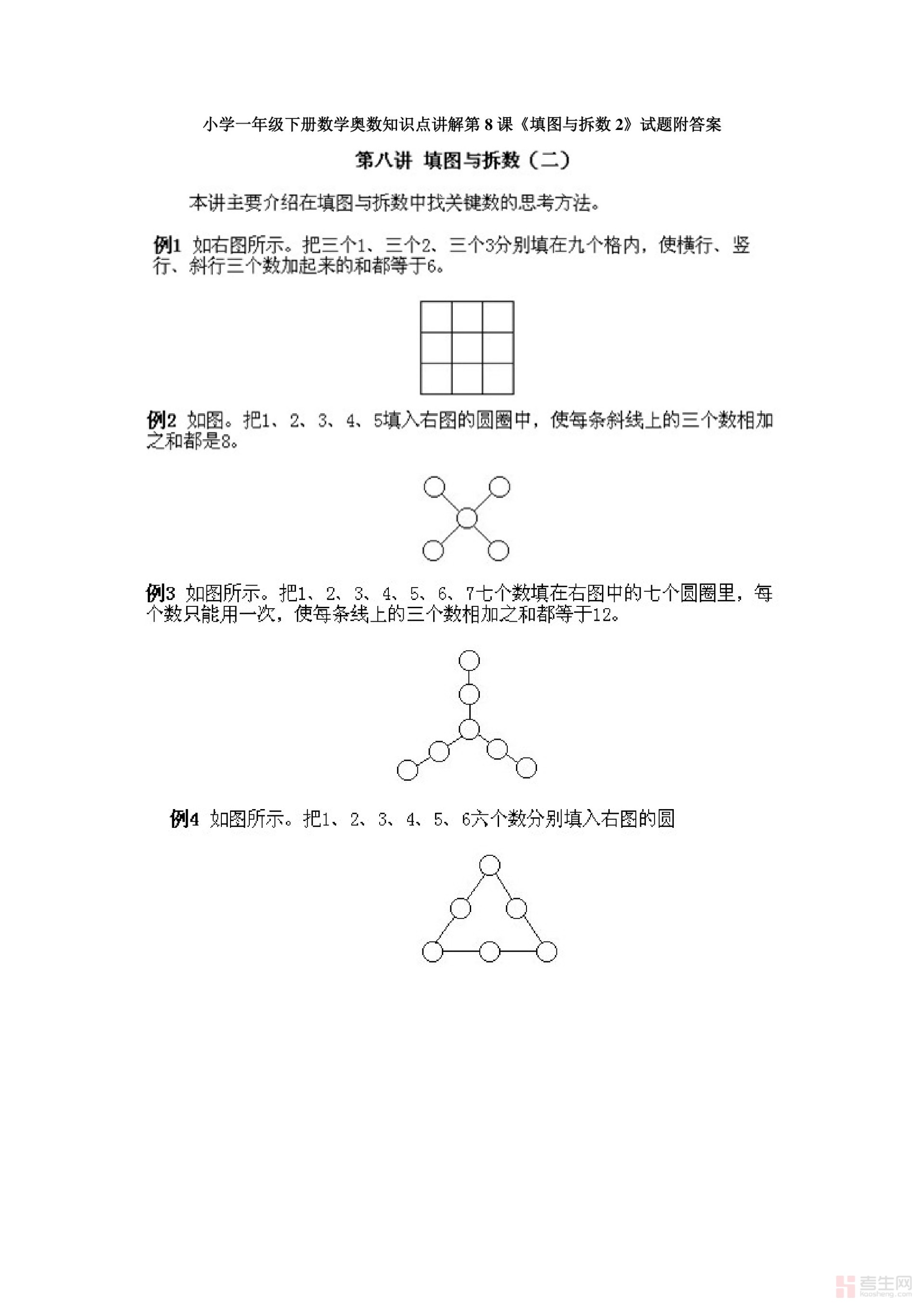 小学一年级下册数学奥数知识点讲解第8课《填图与拆数2》试题附答案