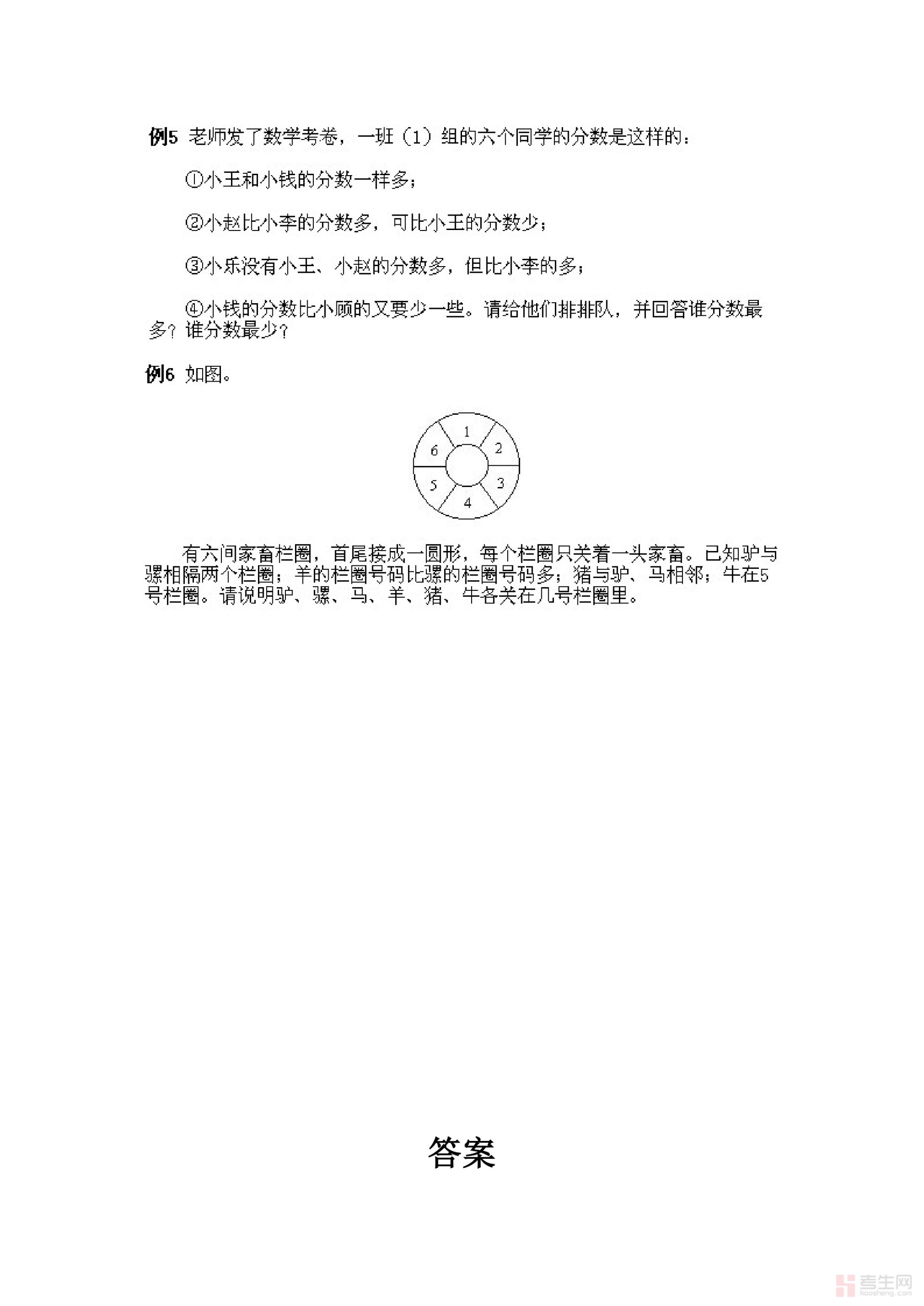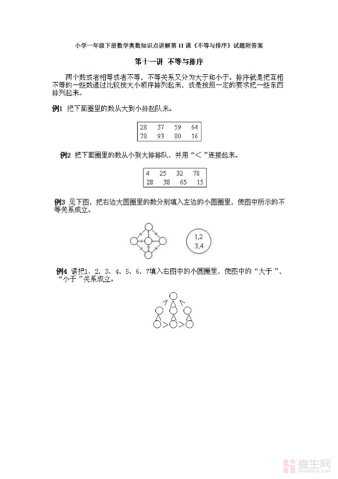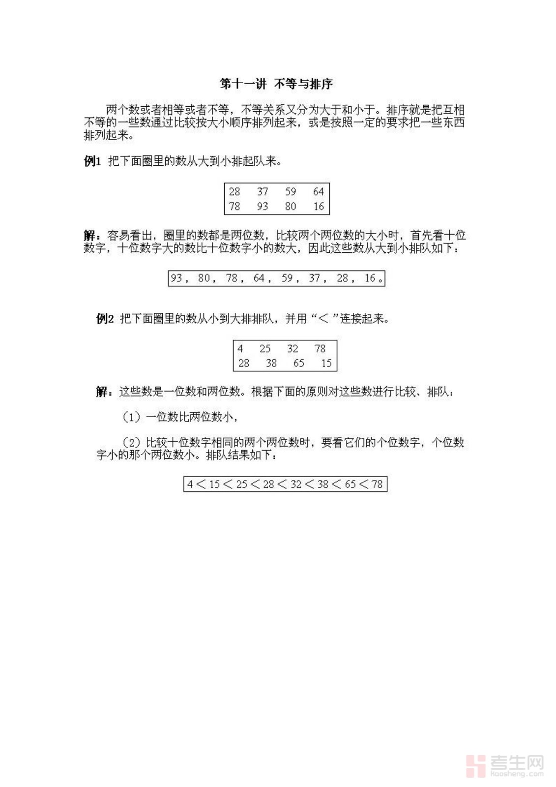 小学一年级下册数学奥数知识点讲解第11课《不等与排序》试题附答案