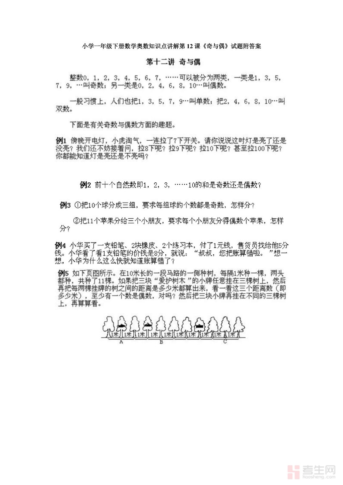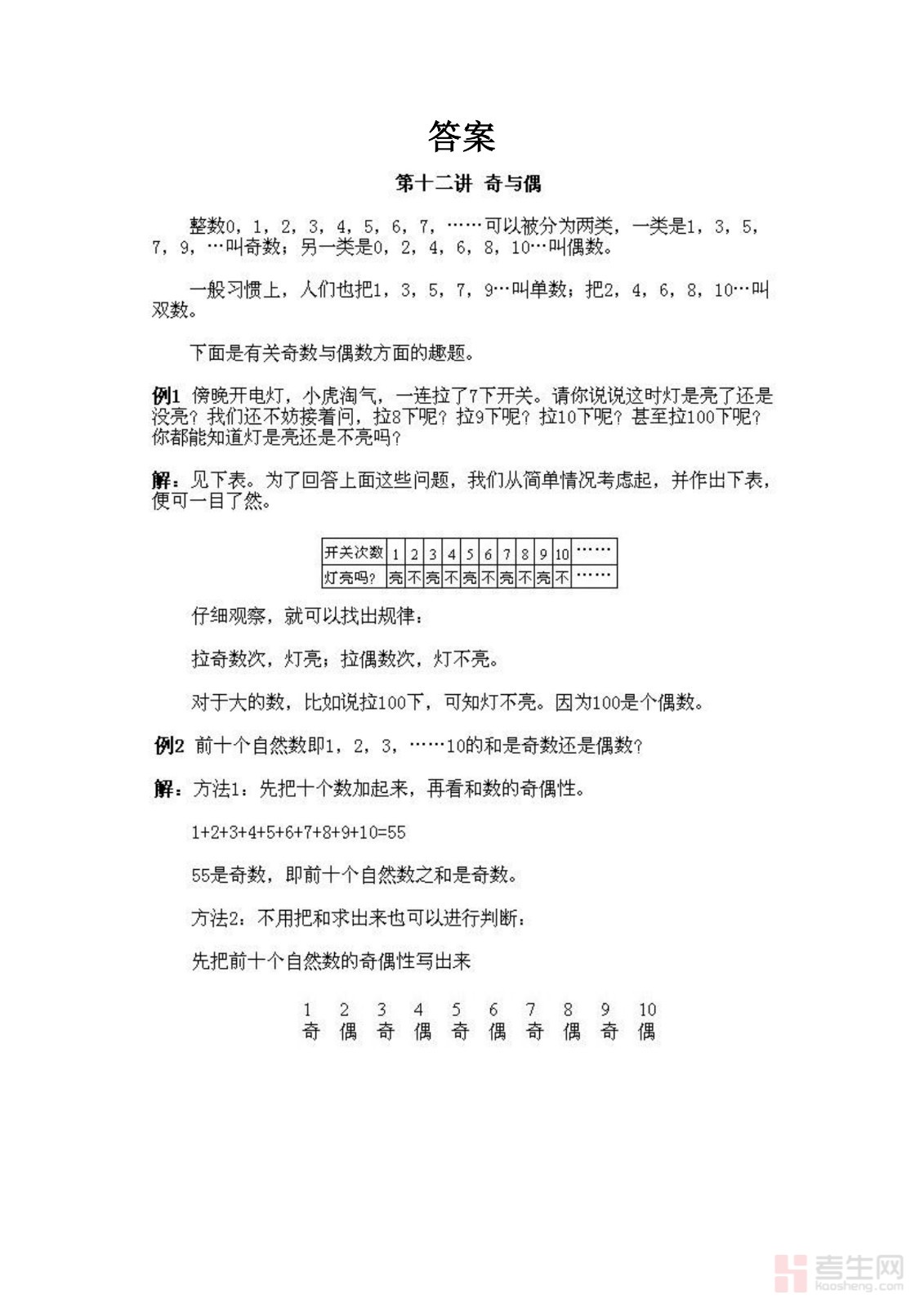 小学一年级下册数学奥数知识点讲解第12课《奇与偶》试题附答案