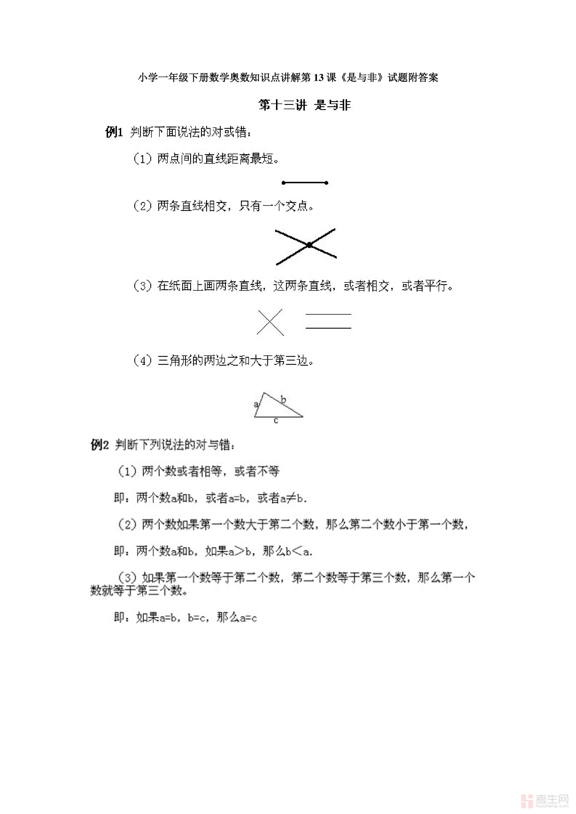 小学一年级下册数学奥数知识点讲解第13课《是与非》试题附答案