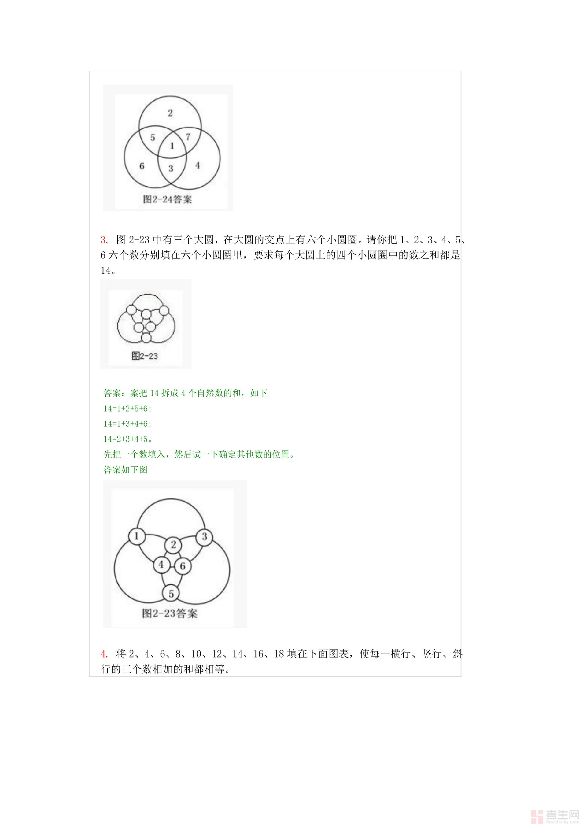 小学一年级下册数学奥数知识点讲解第7课《填图与拆数1》试题附答案