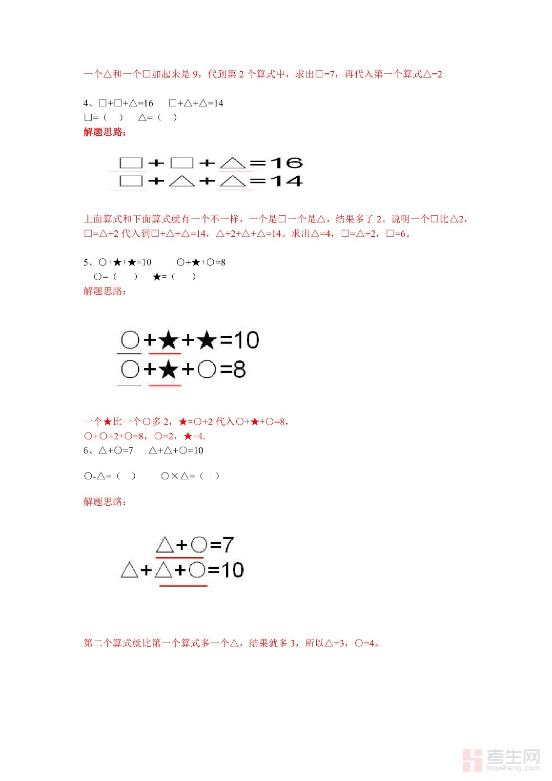 一年级下学期奥数题