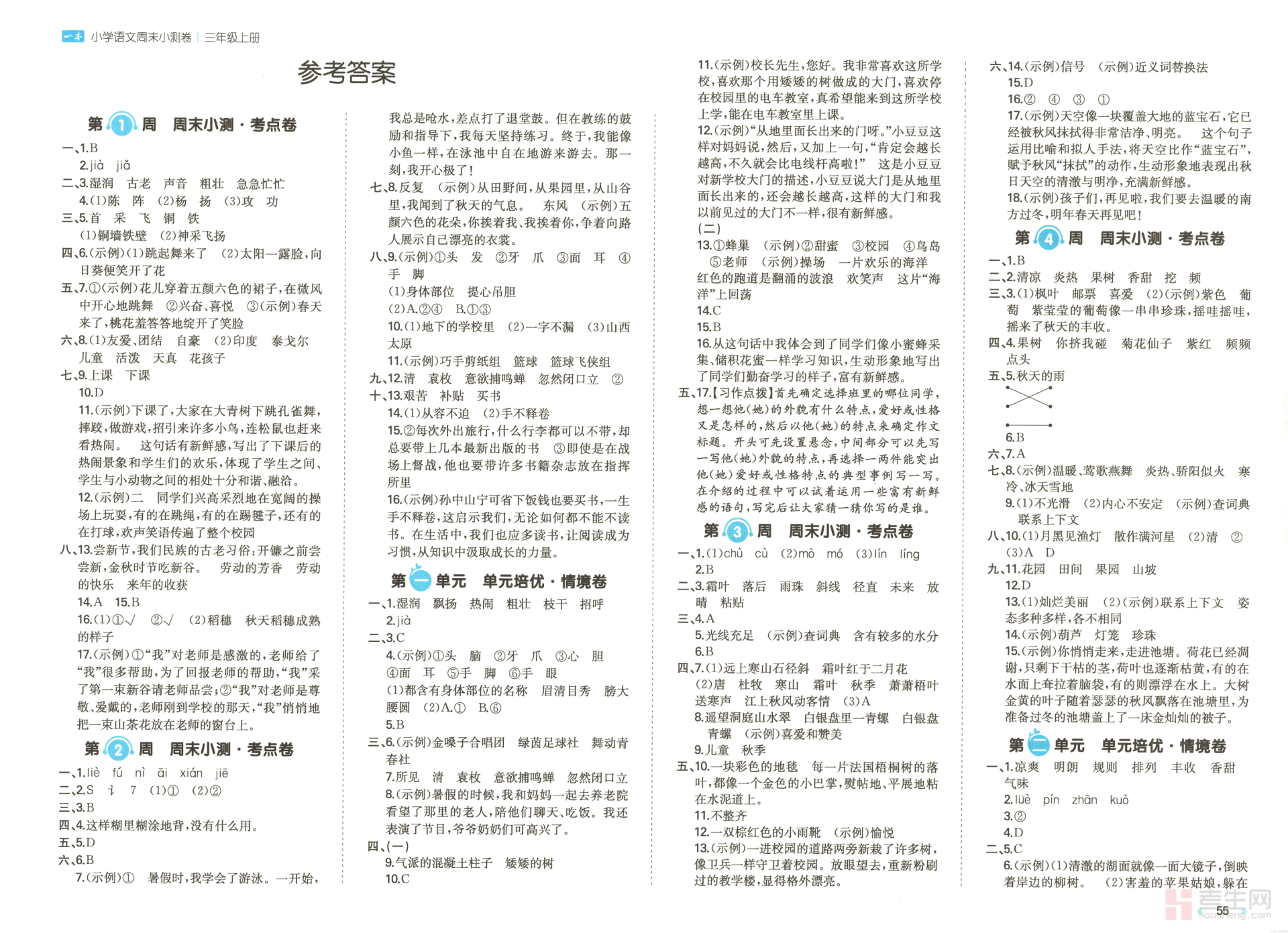 2025秋一本周末小测卷数学和语文3上SJ(含答案)