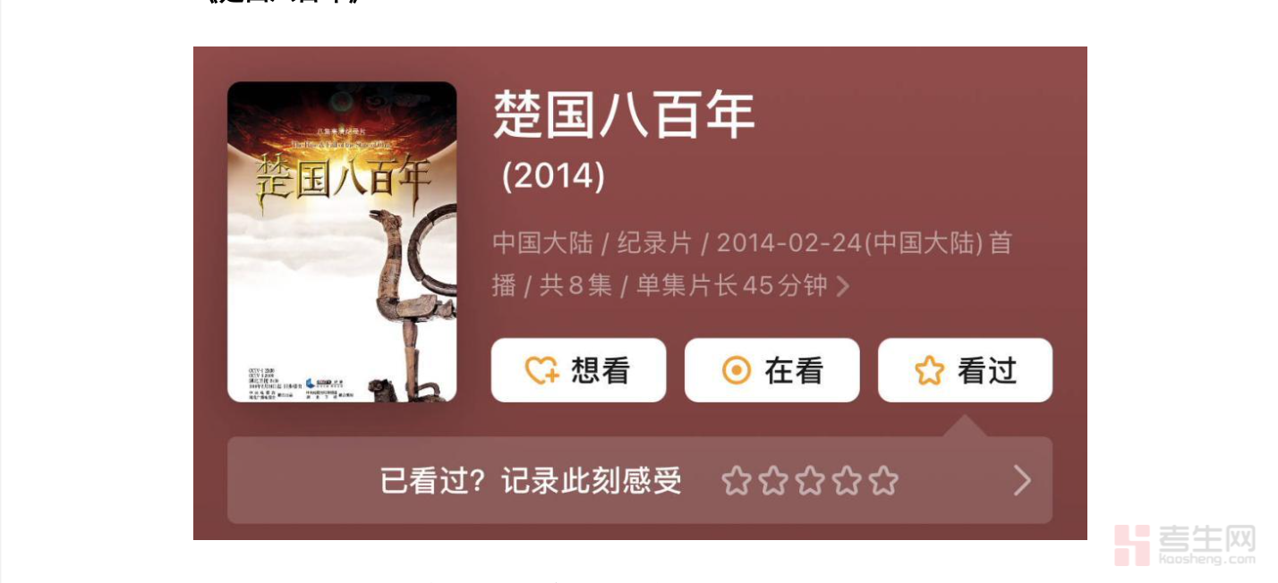 《楚国八百年》(2014)用 8 集篇幅,讲透楚国从周朝建立到被秦灭亡的完整历程。提到楚国,孩子会想到老庄的哲学、屈原的《离骚》、项羽的豪迈,这部片就把这些人物和故事放进历史脉络里,让孩子明白:为什么楚国总让人偏爱,又为何八百年基业最终只剩一声嗟叹。