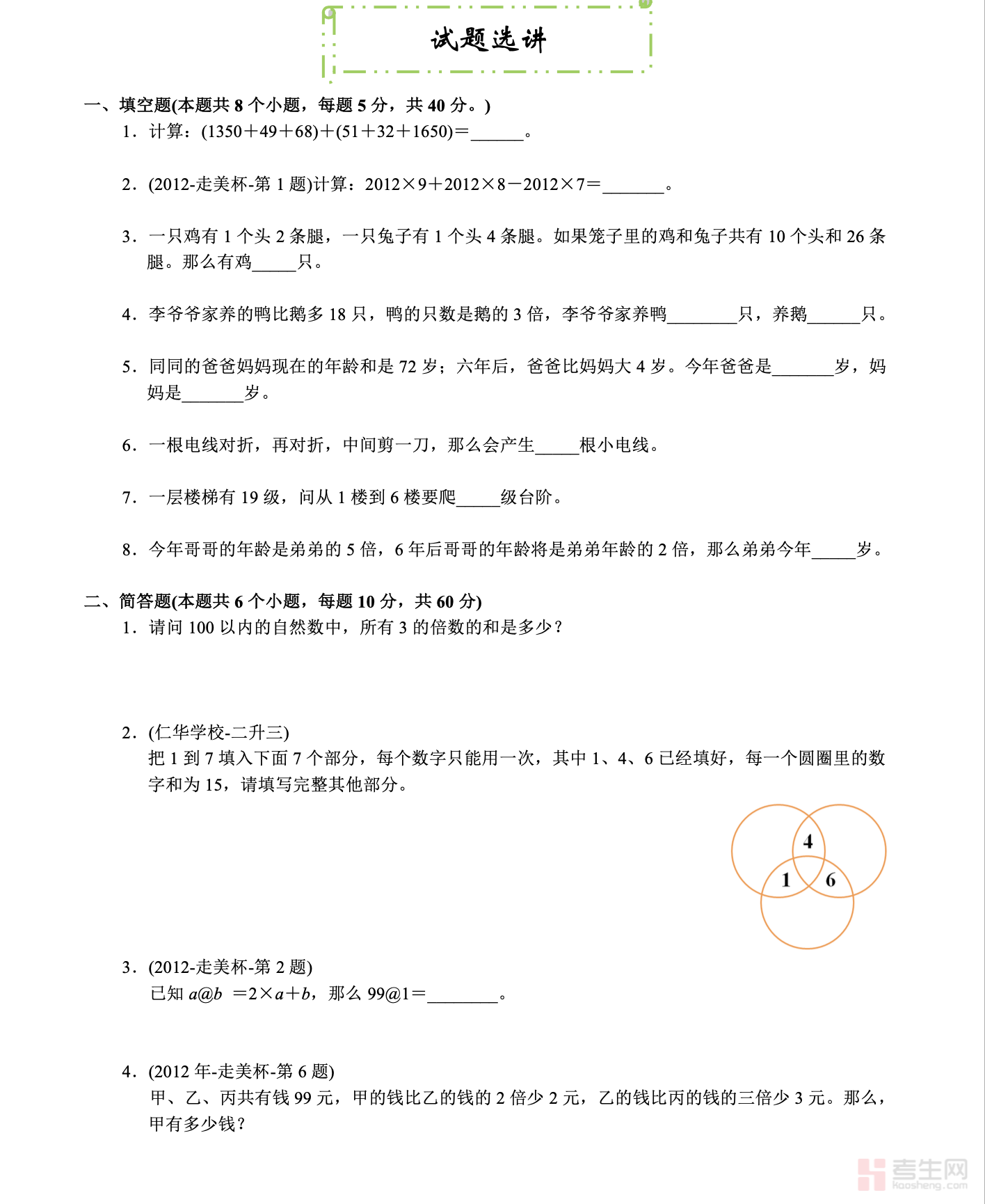 1/16专辑:三年级奥数春季班
