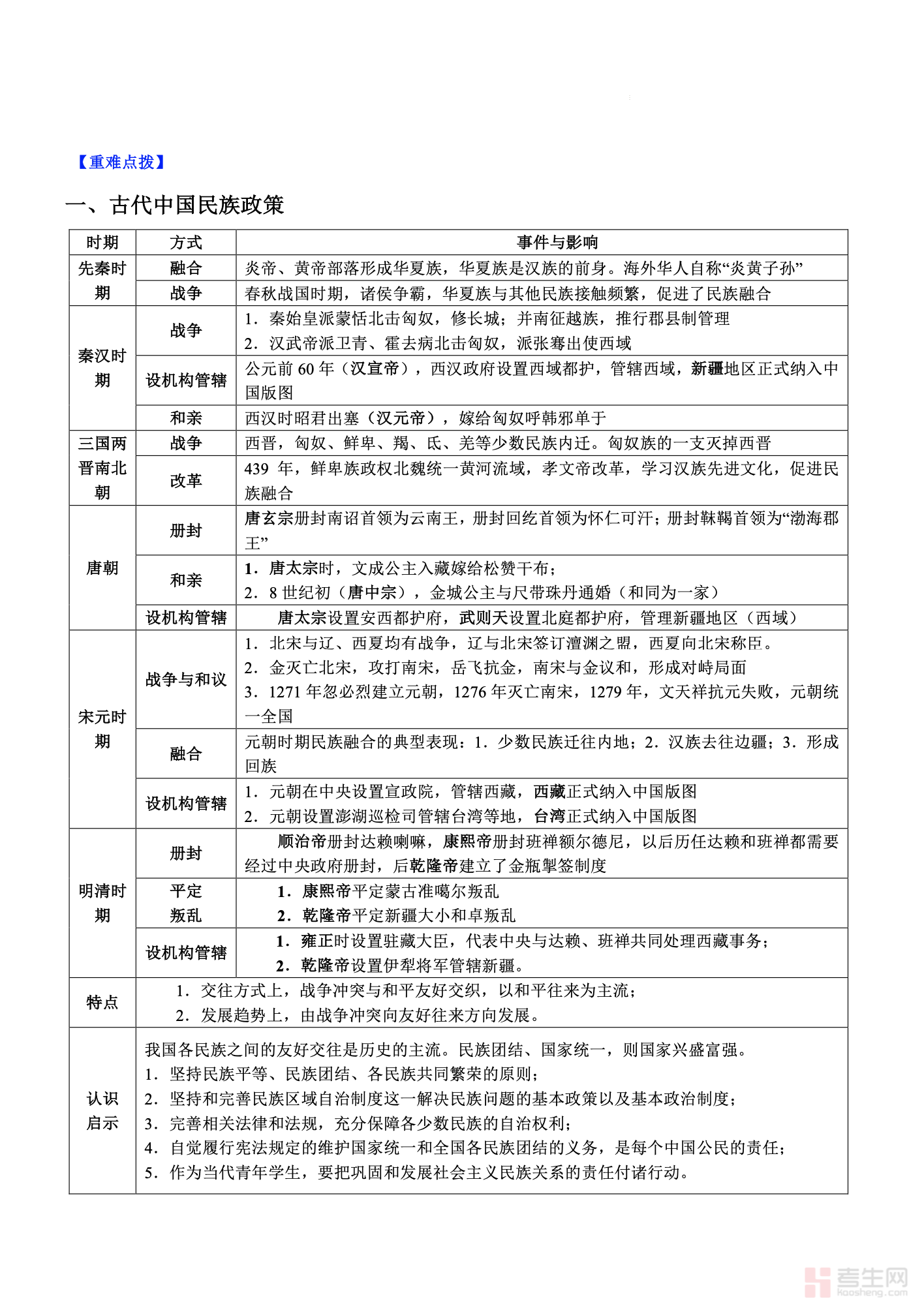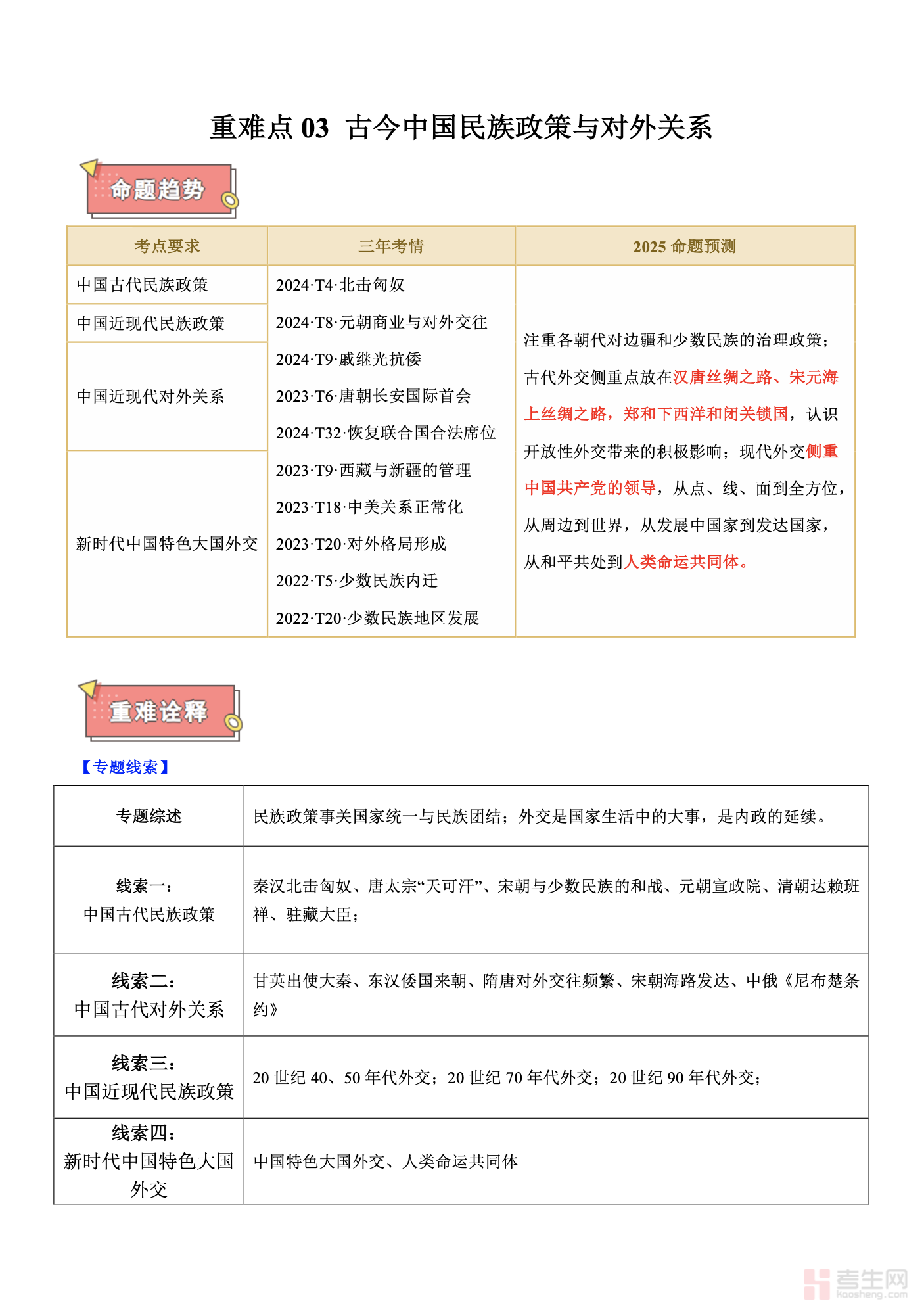 重难点03 古今中国民族政策与对外关系(原卷版)(含解析)