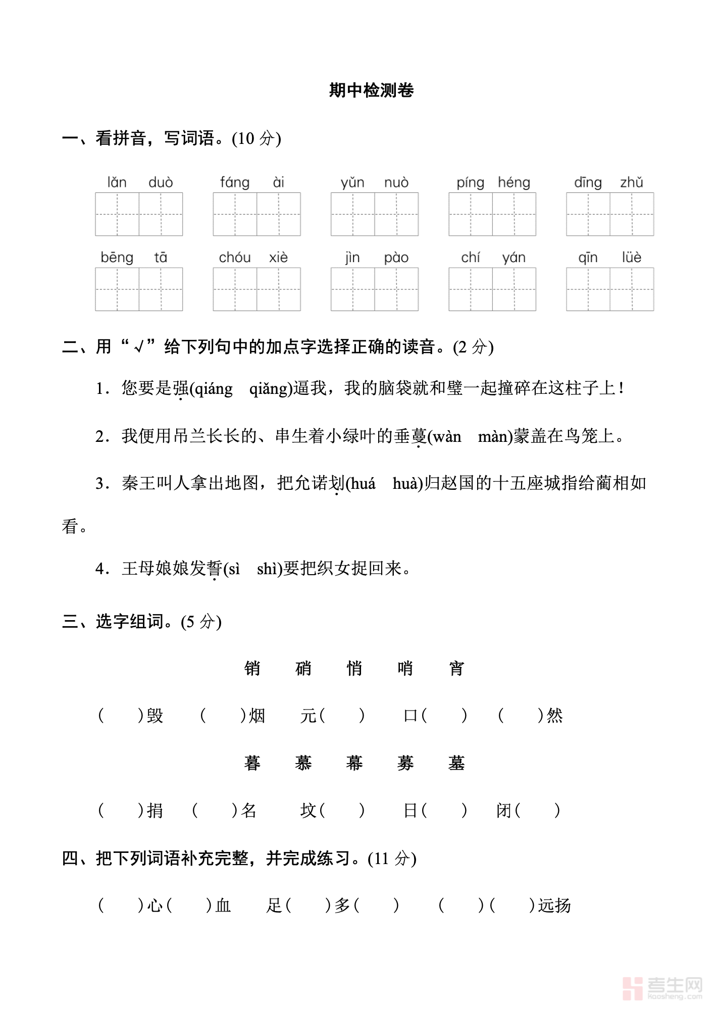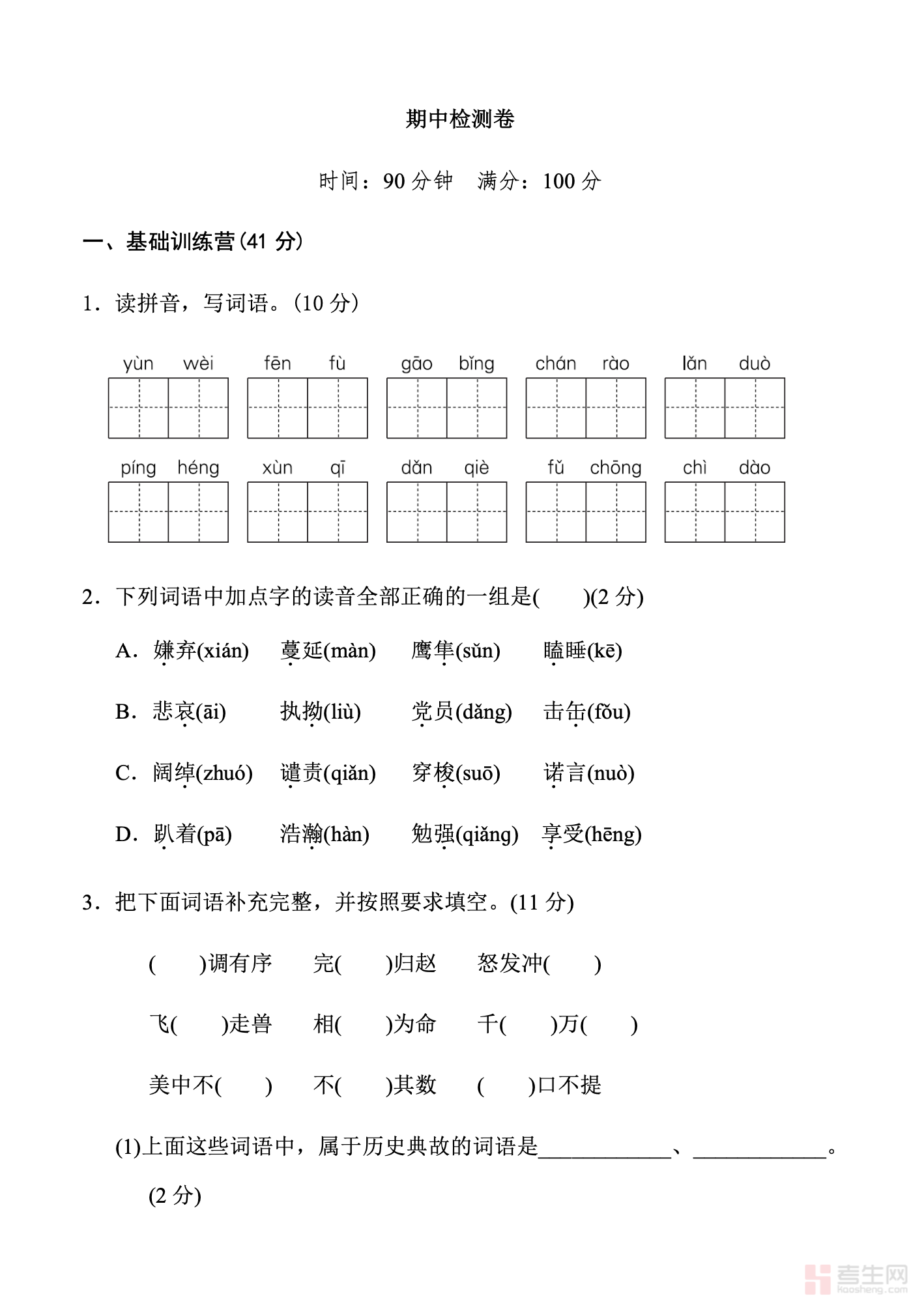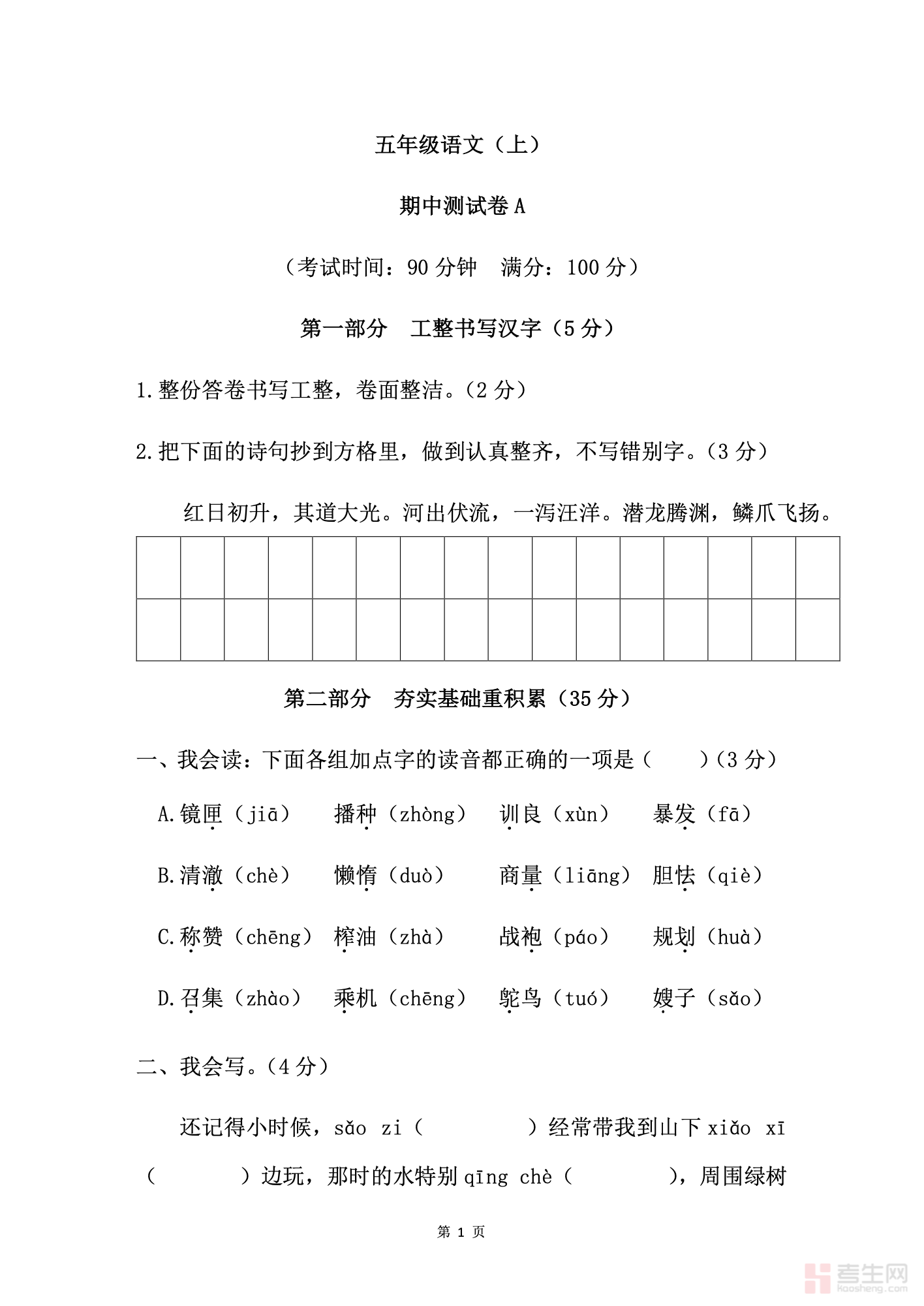 2025-2026五年级上册语文模拟测试卷【期中押题试卷】(含答案)