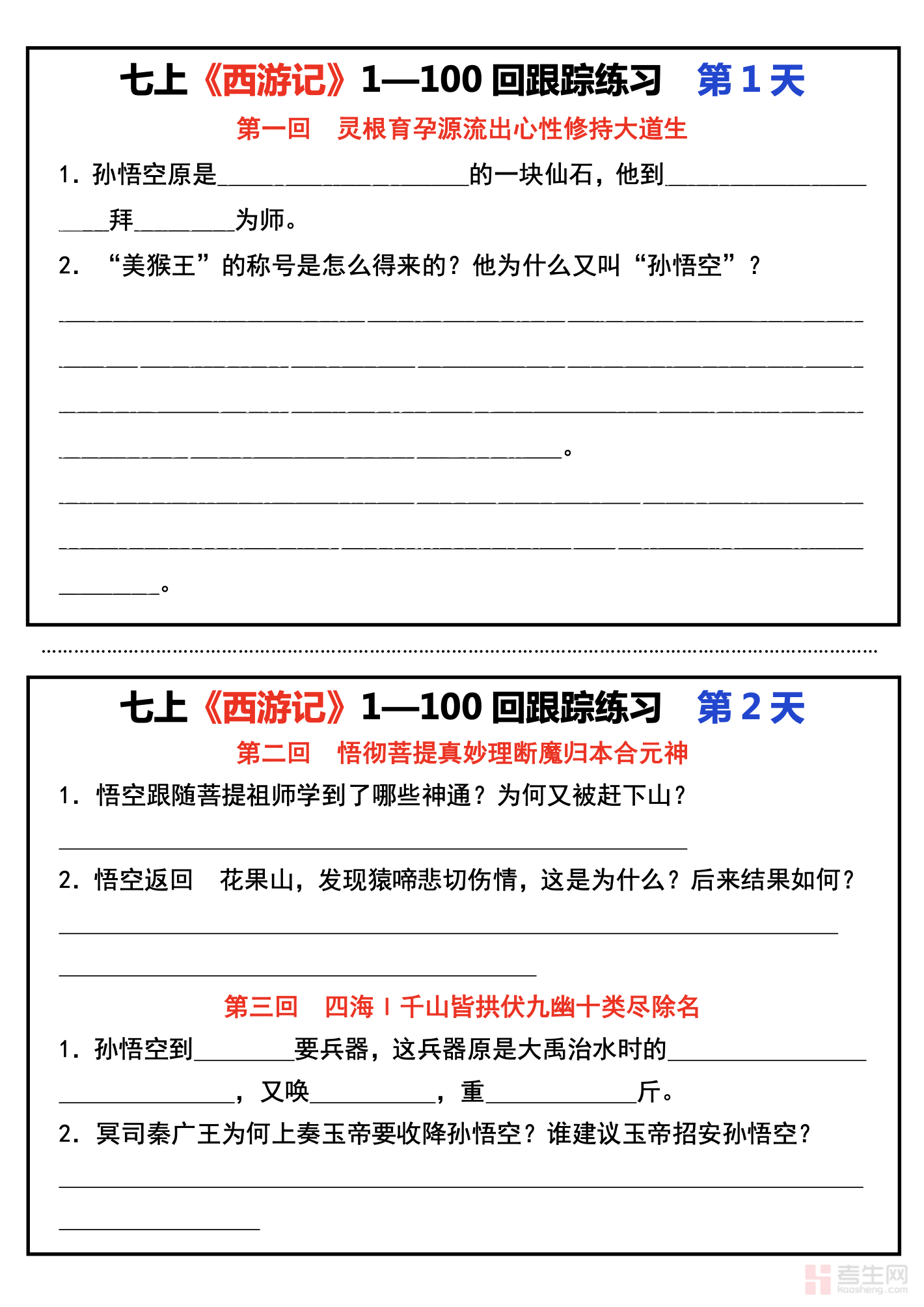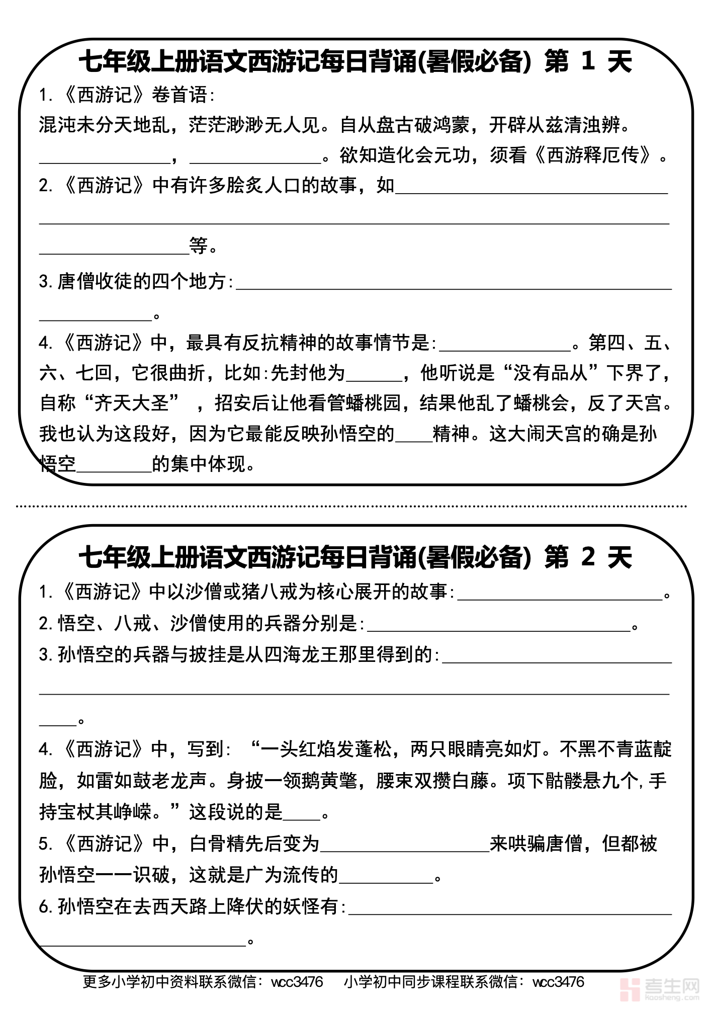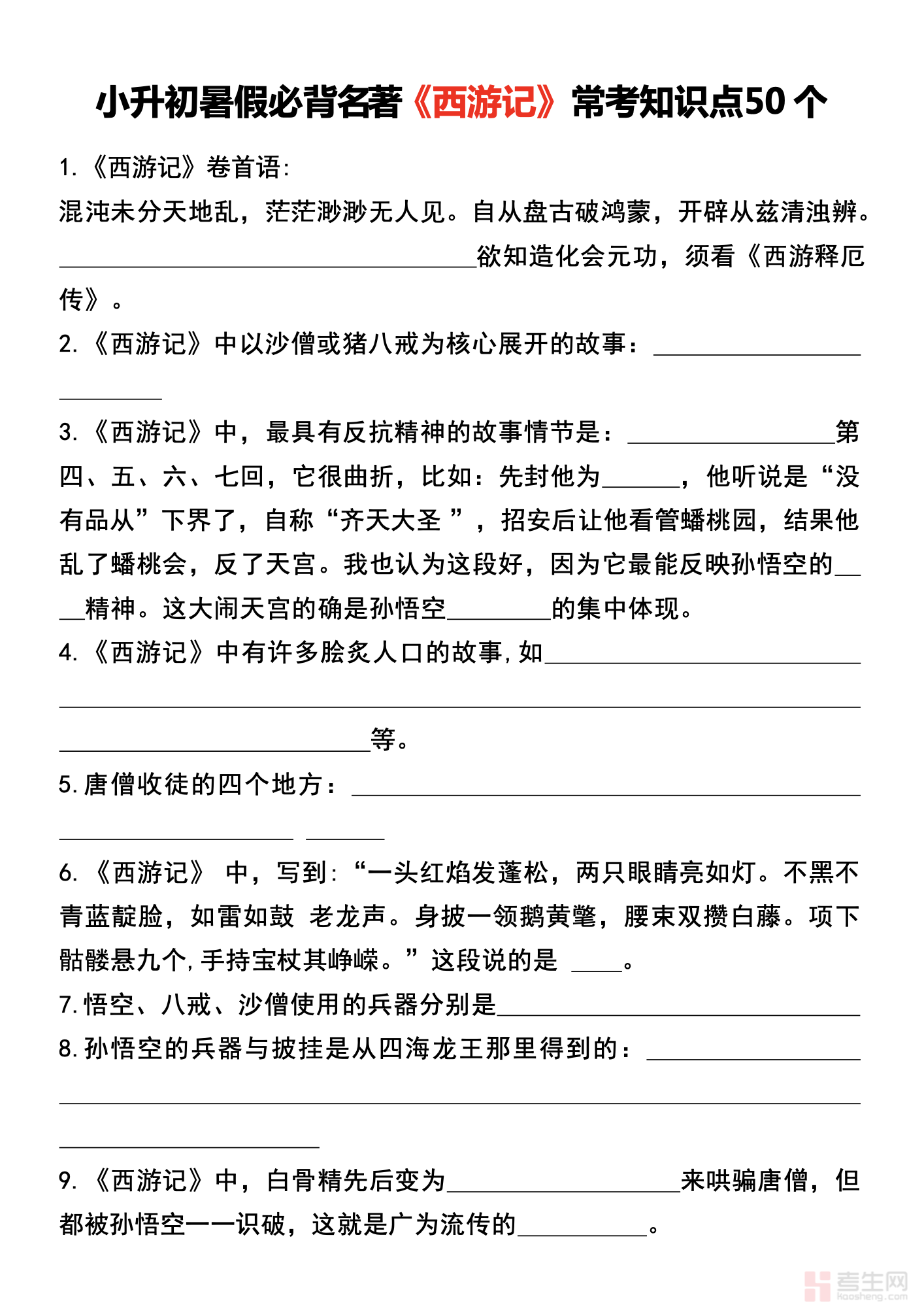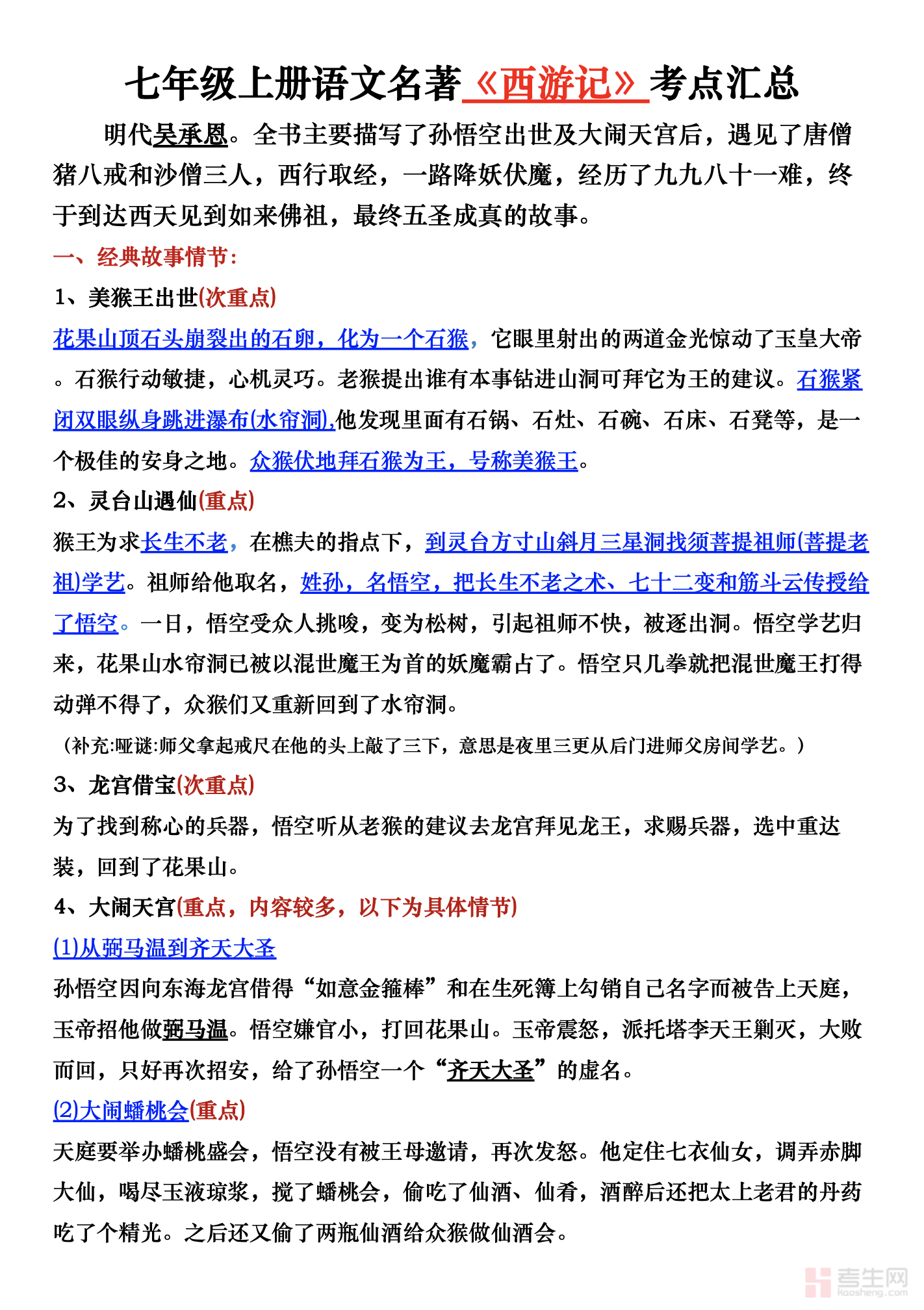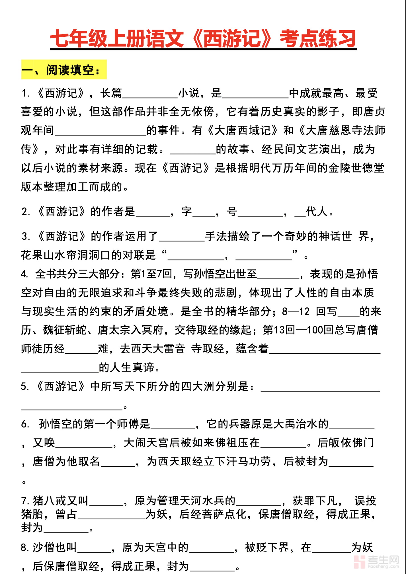 七年级上册语文《西游记》重要考点汇总(含答案解析)