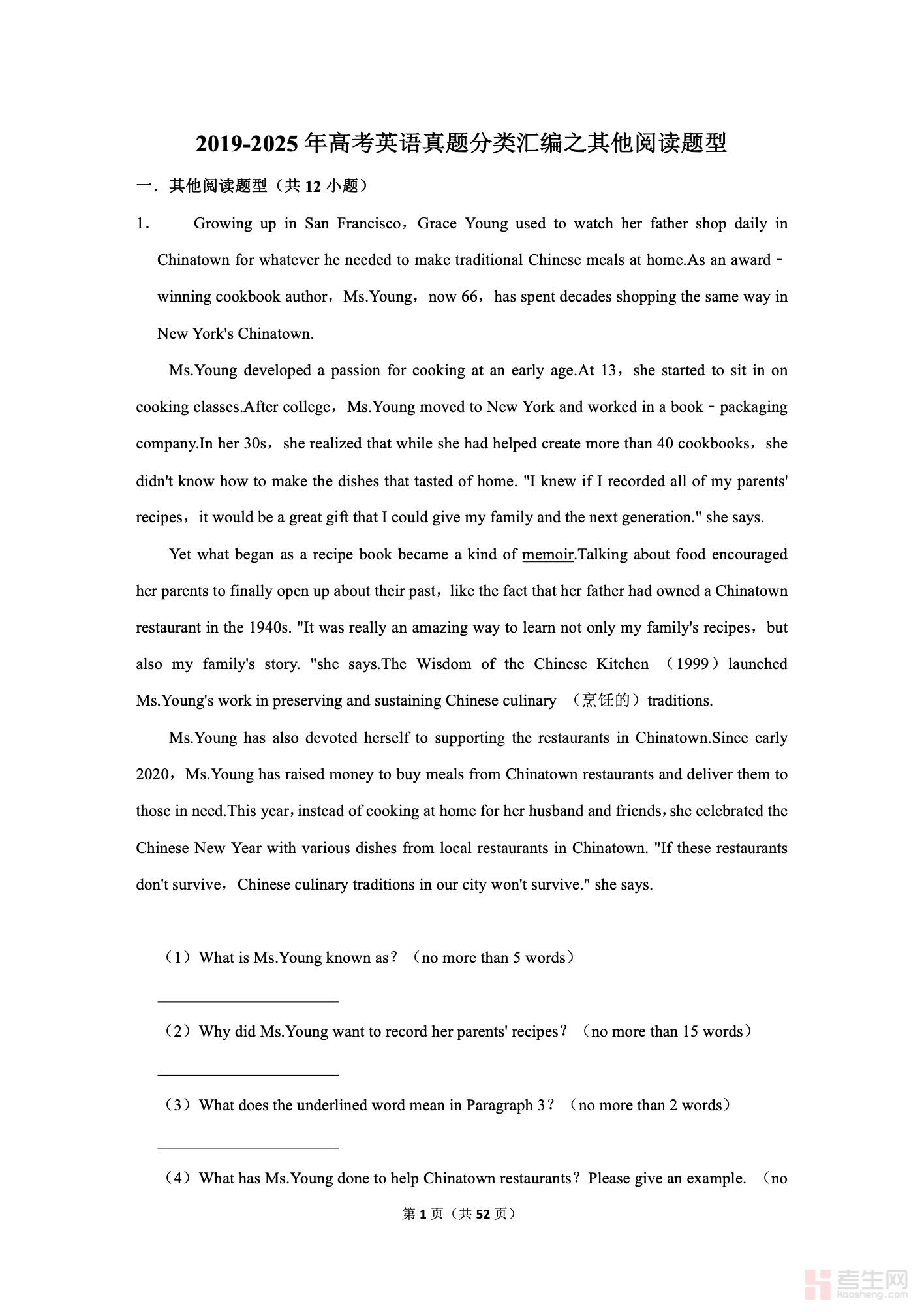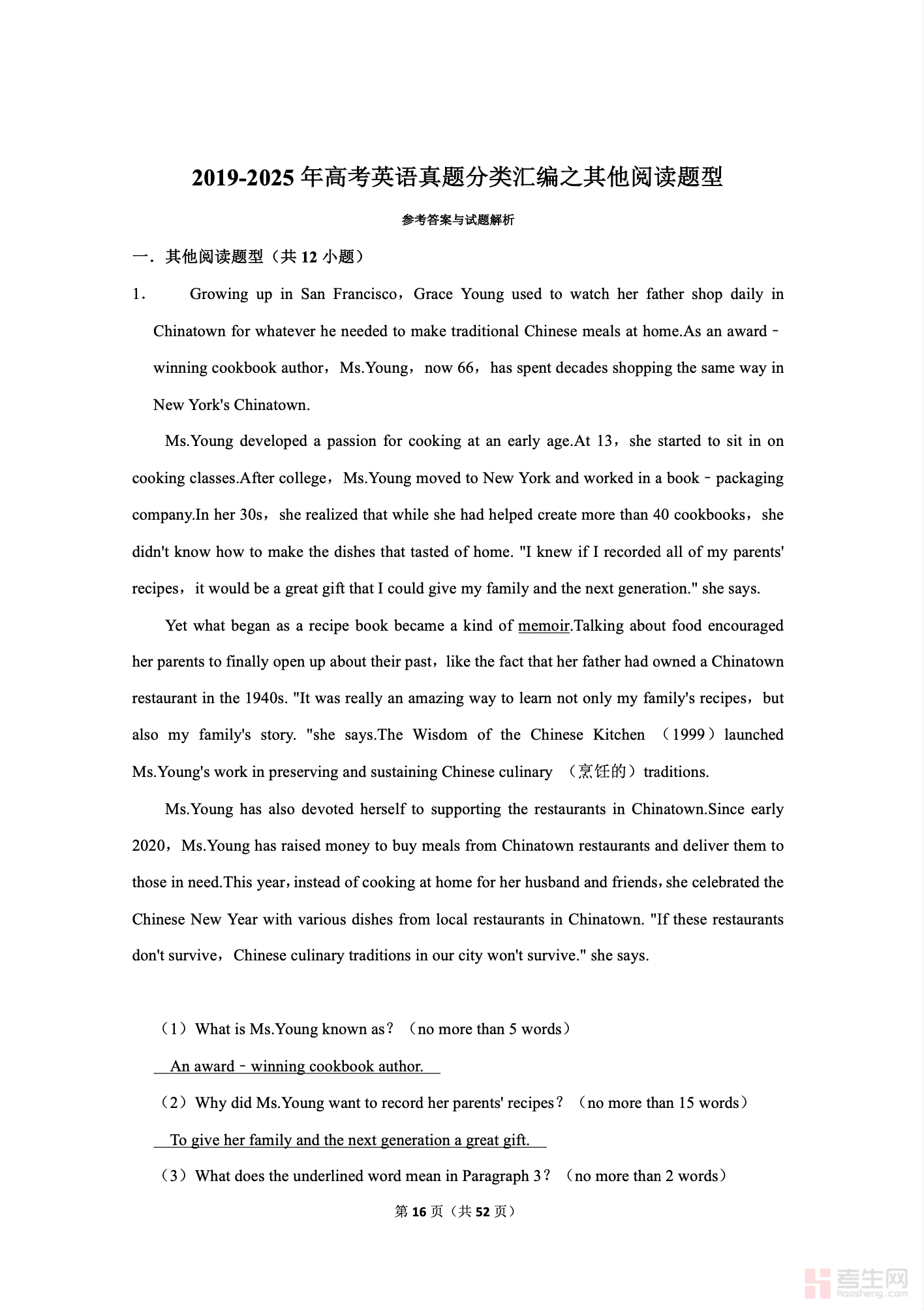 高考英语真题分类汇编-其他阅读题型(含答案解析)