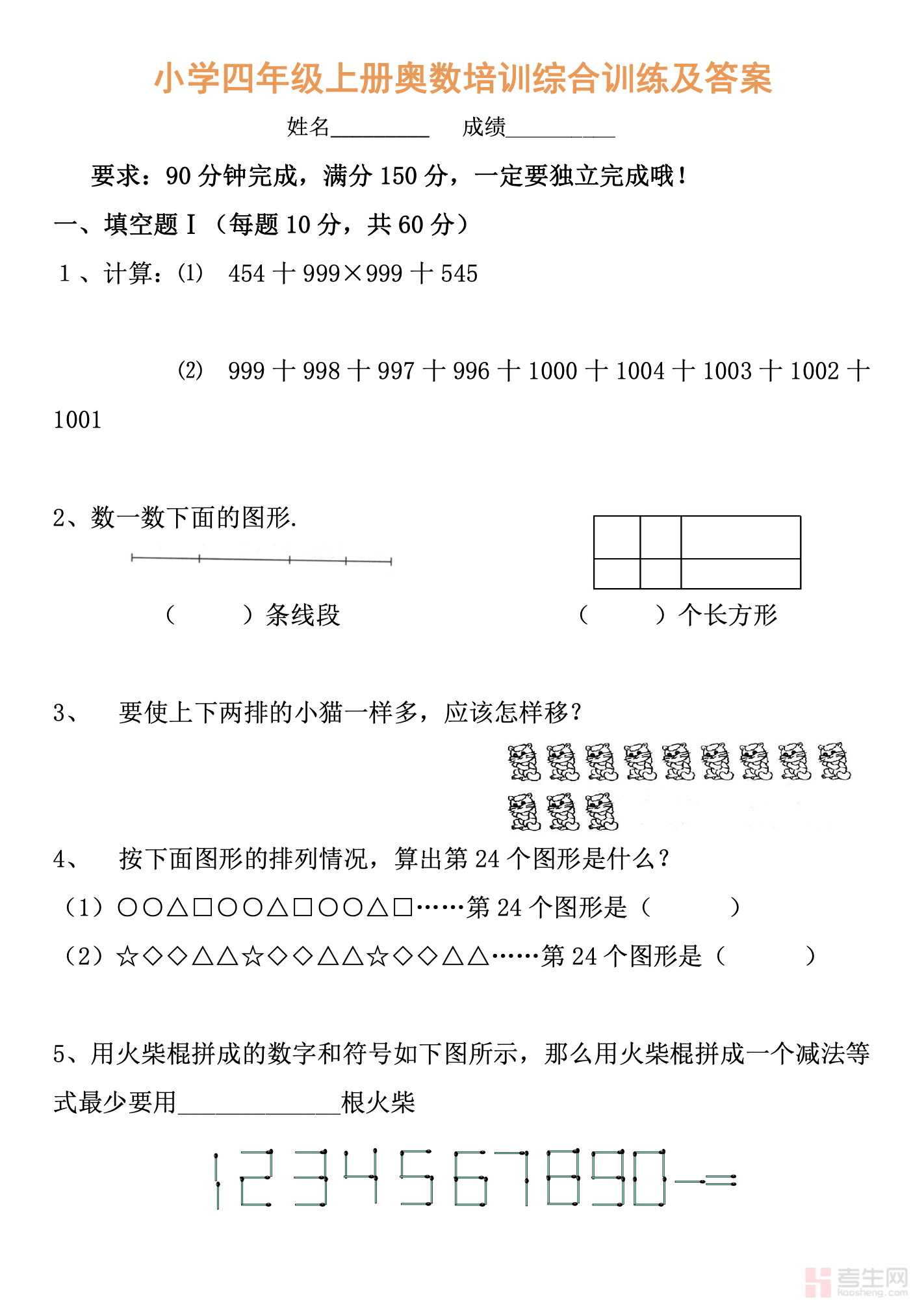 小学四年级奥数培训综合训练及答案