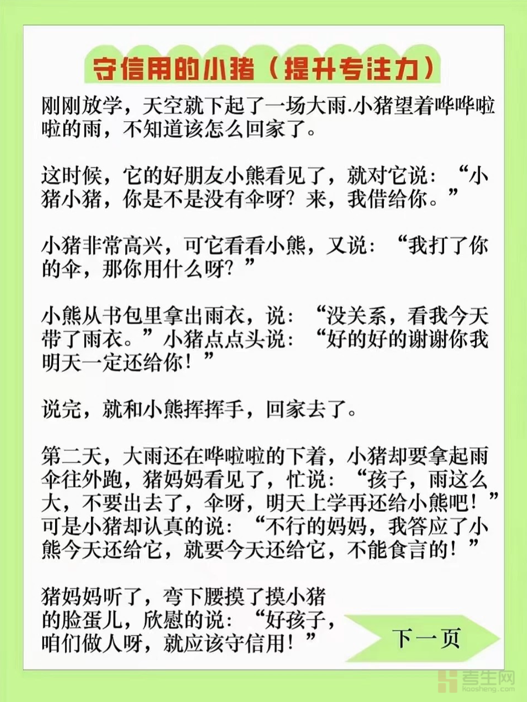 每天一个寓言小故事,引导孩子懂思考,爱思考的能力。不强调认字,强调培育思考的意识,培育孩子的专注力,思维力和学习力。