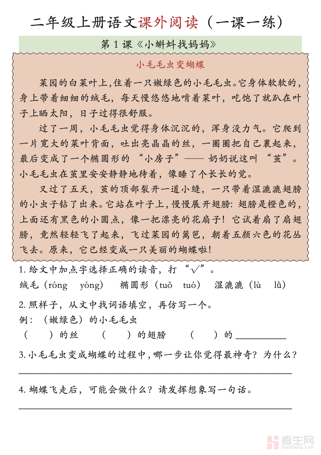 语文期中课外阅读专项(含答案)|二年级上