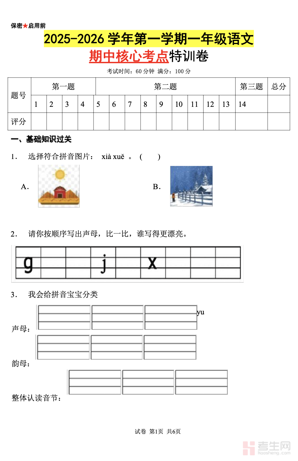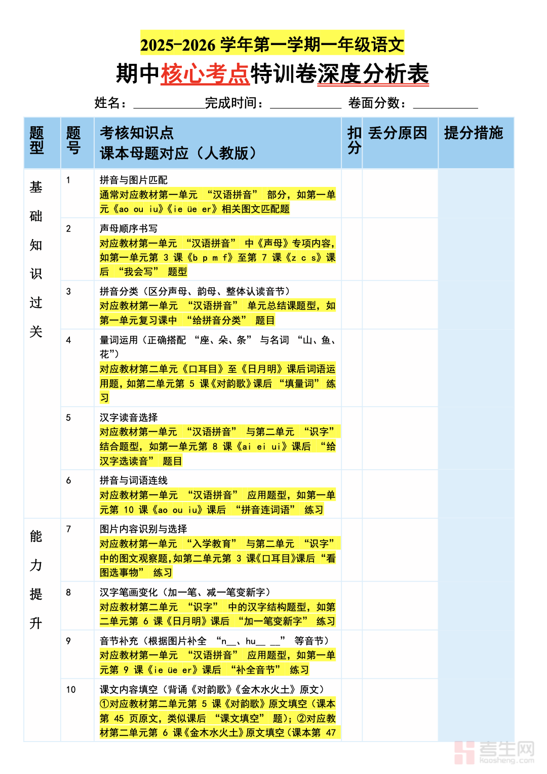2025年语文期中核心考点特训卷(含答案解析)|一年级