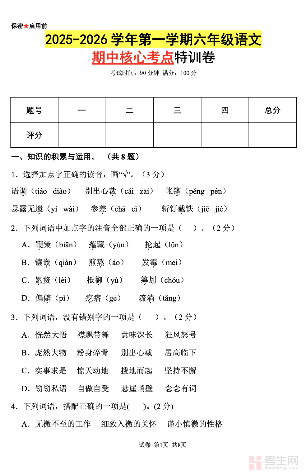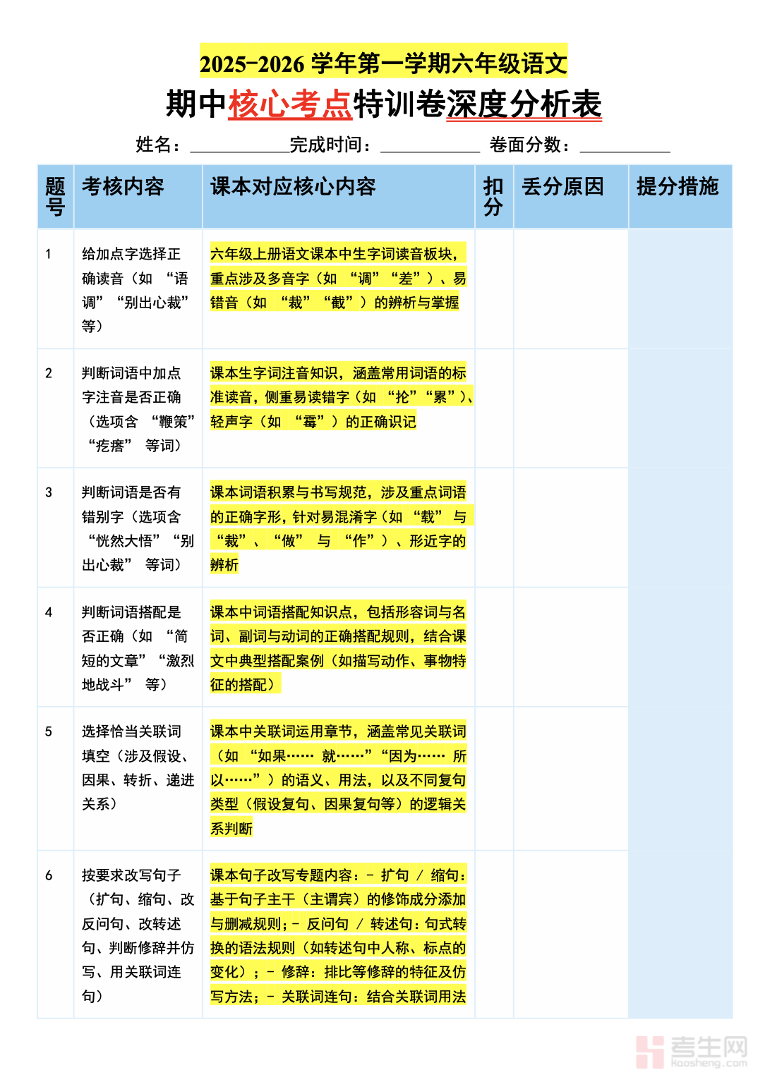 2025年语文期中核心考点特训卷(含答案解析)|六年级