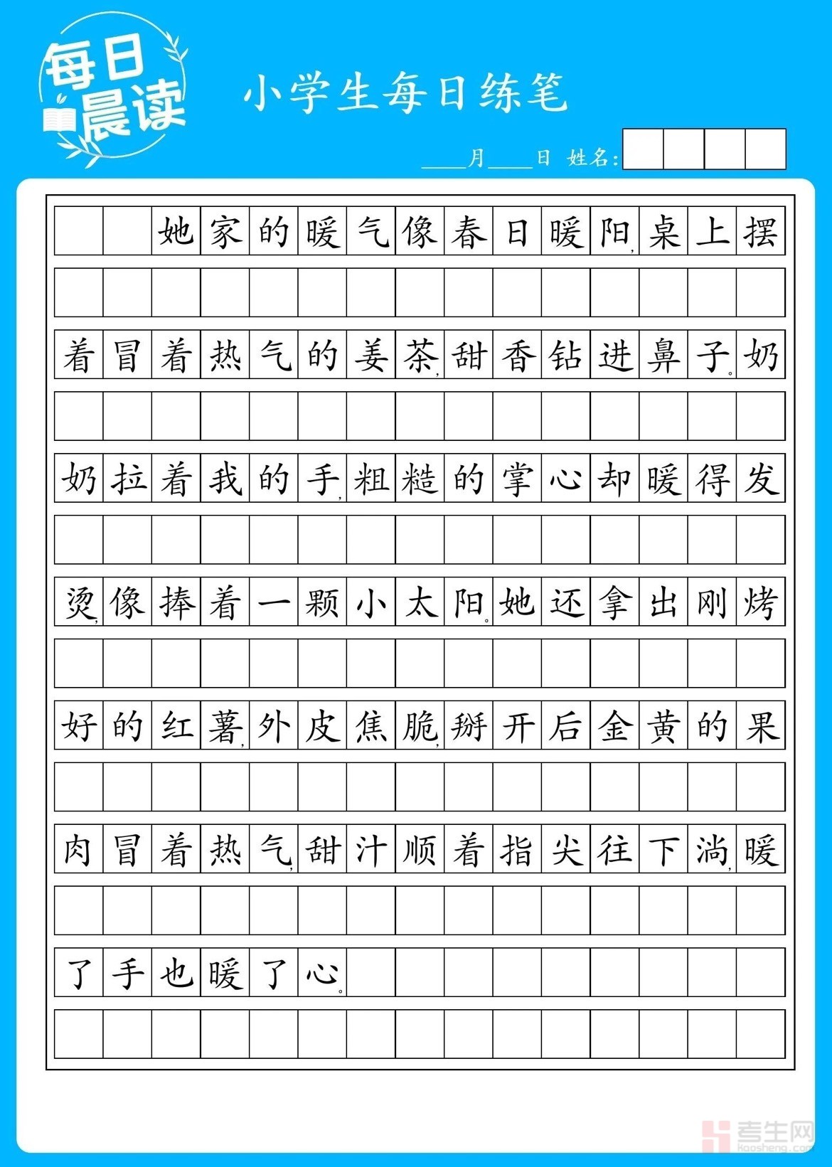 资料已上传至考生网,下载路径简单便捷:登录考生网,搜索 “《冬日里的 “小太阳”》晨读 + 练笔资料”,即可一键获取。你可以在清晨伴着晨光品读温暖故事,开启一天的好心情;也可以在寒冬的闲暇时光,结合自身经历完成练笔,将寒日里的暖与光付诸文字。