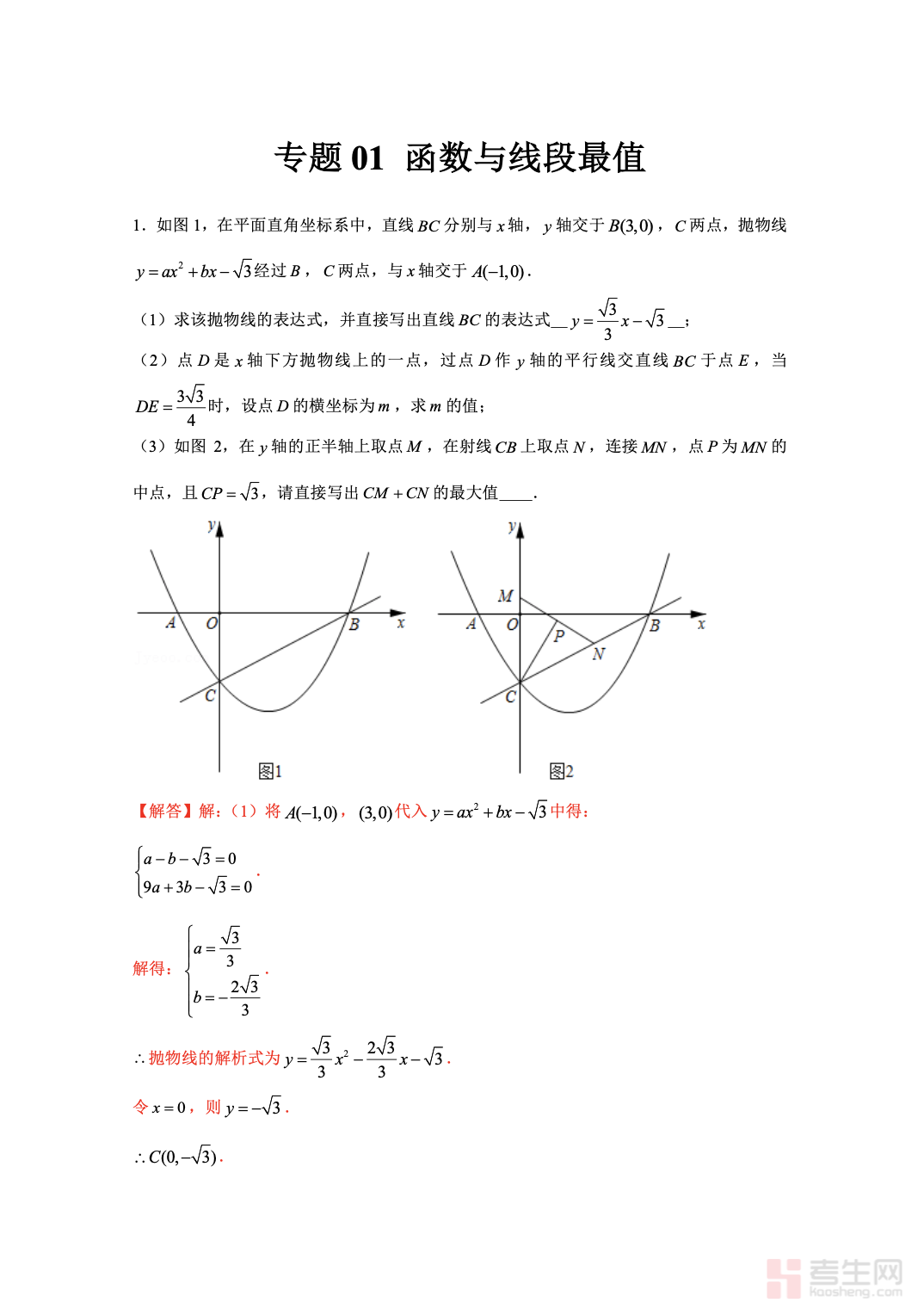 32/32专辑:中考数学解答题压轴题之函数+几何专项突破(全国通用)