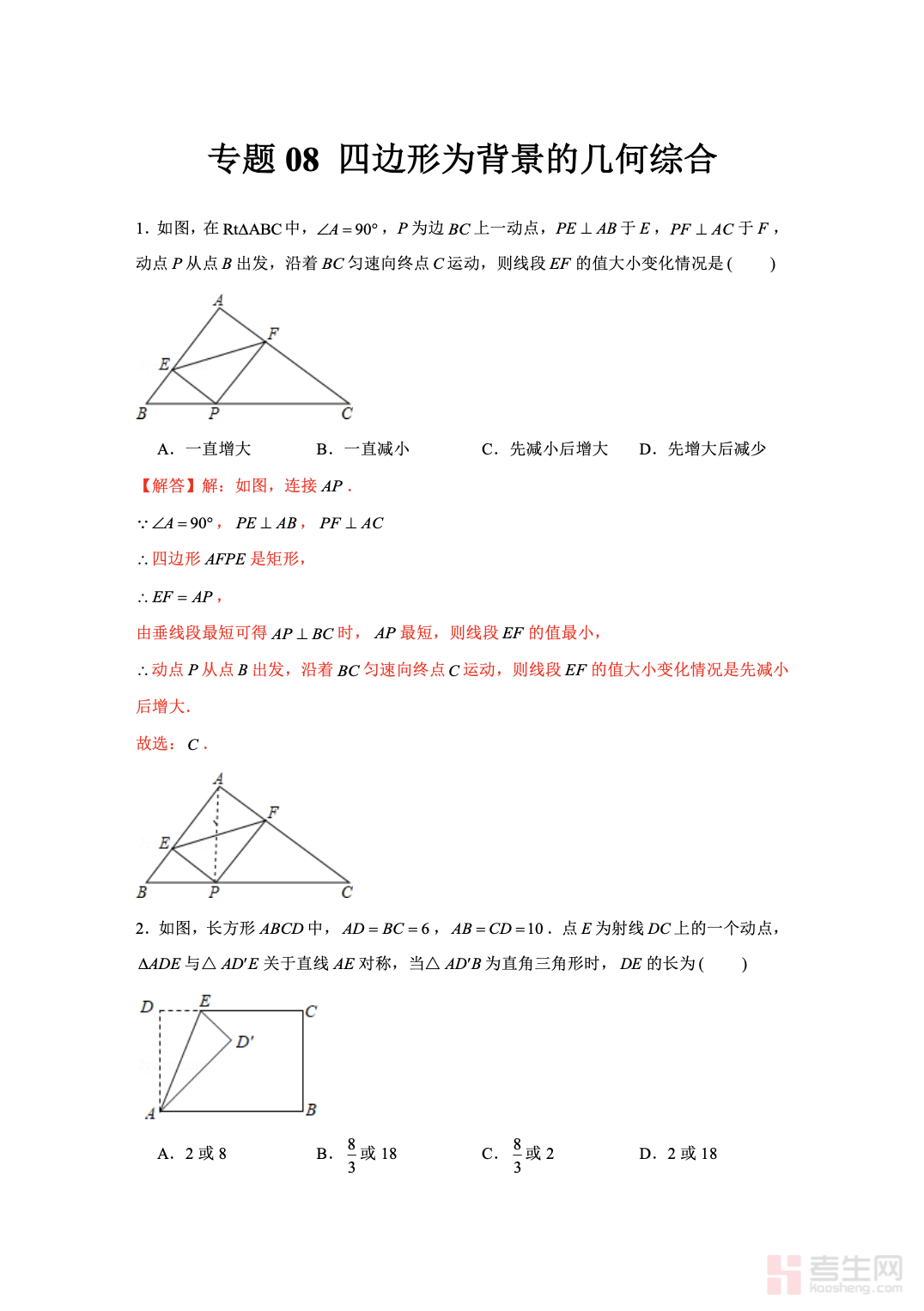 14/42专辑:中考数学选填题压轴题专项突破(全国通用)