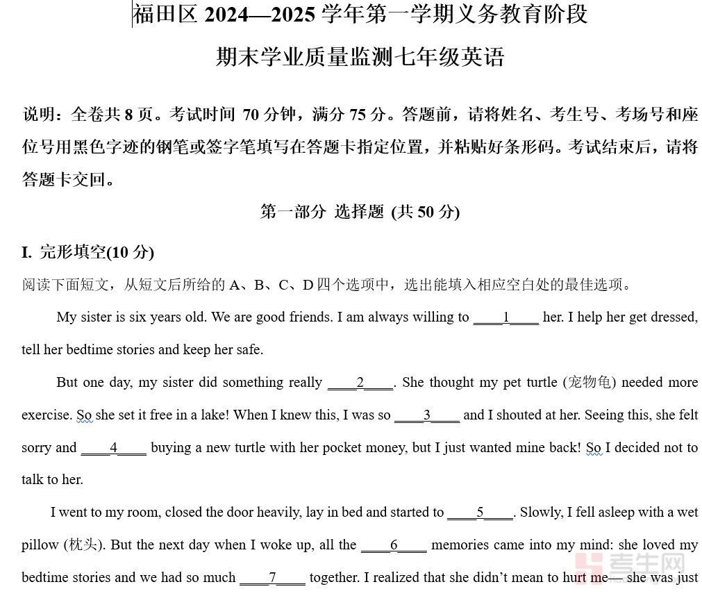 精品解析:广东省深圳市福田区2024-2025学年七年级上学期期末学业质量监测英语试题