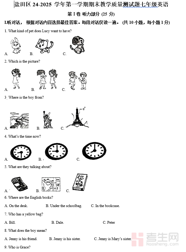 精品原卷:广东省深圳市盐田区2024-2025学年七年级上学期期末考试英语试题