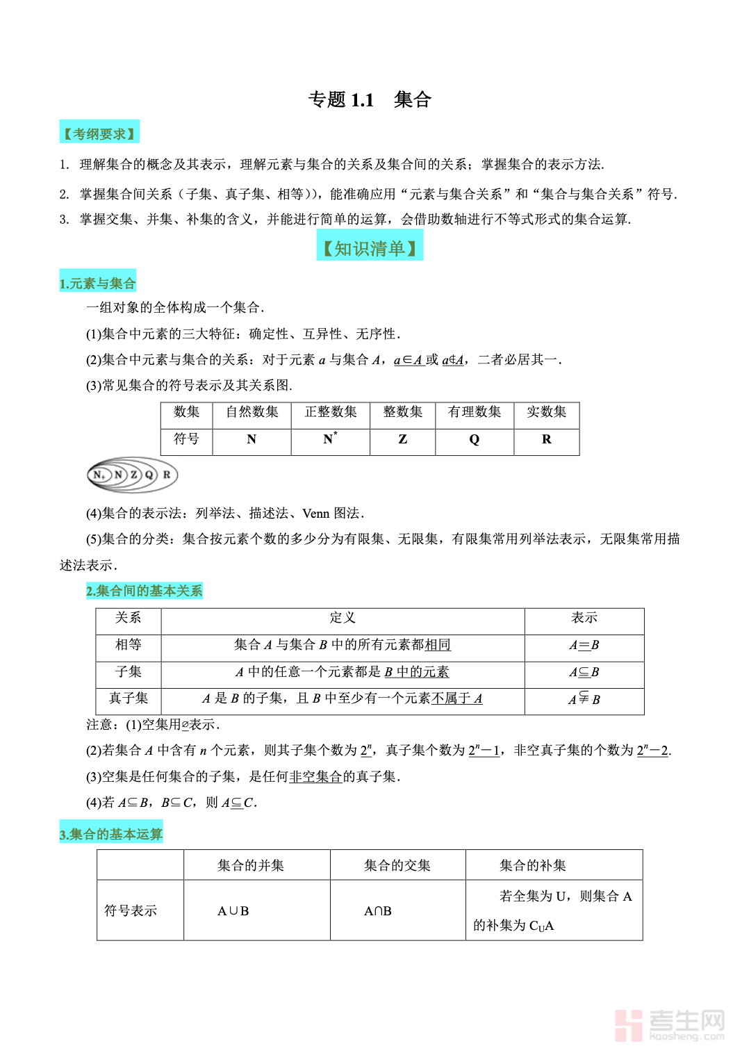 1.1 集合 高考数学一轮艺体生基础复习讲义(新高考)(教师版)