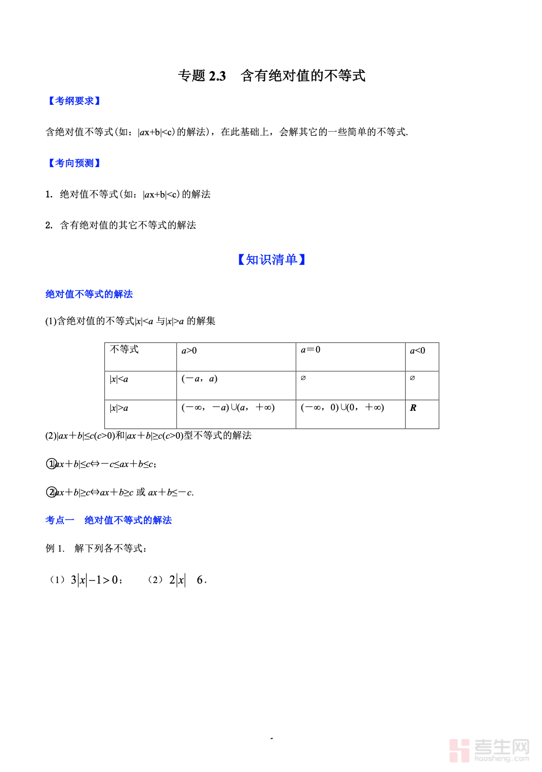 2.3 含有绝对值的不等式 高考数学一轮艺体生基础复习讲义(新高考)(学生版)
