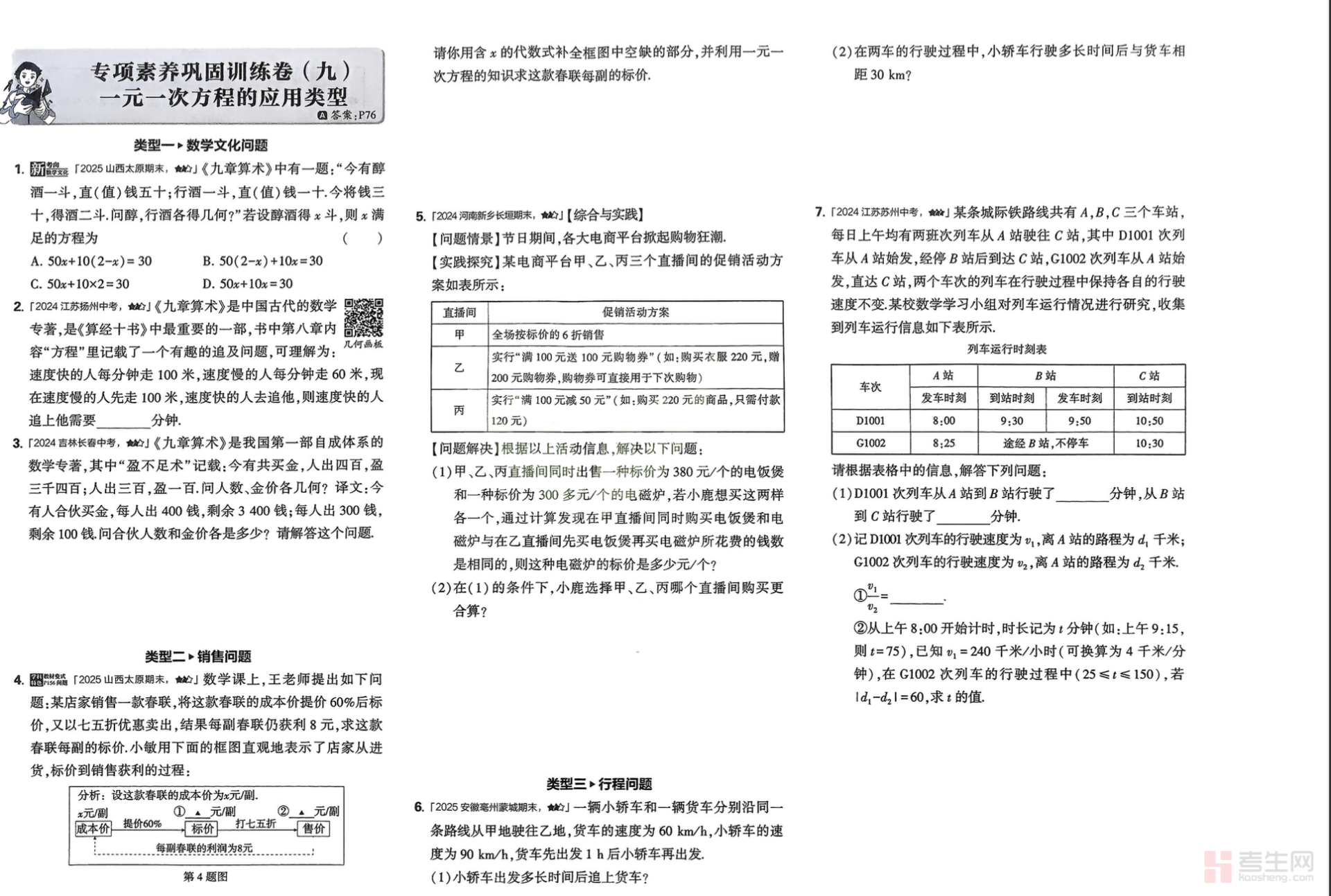 数学部分注重逻辑思维和解题能力培养,题目分层合理:基础题打牢概念,中档题强化方法,难题突破瓶颈,助力循序渐进提升数学水平。排版清晰,答案单独整理,方便自主练习、自我检测。