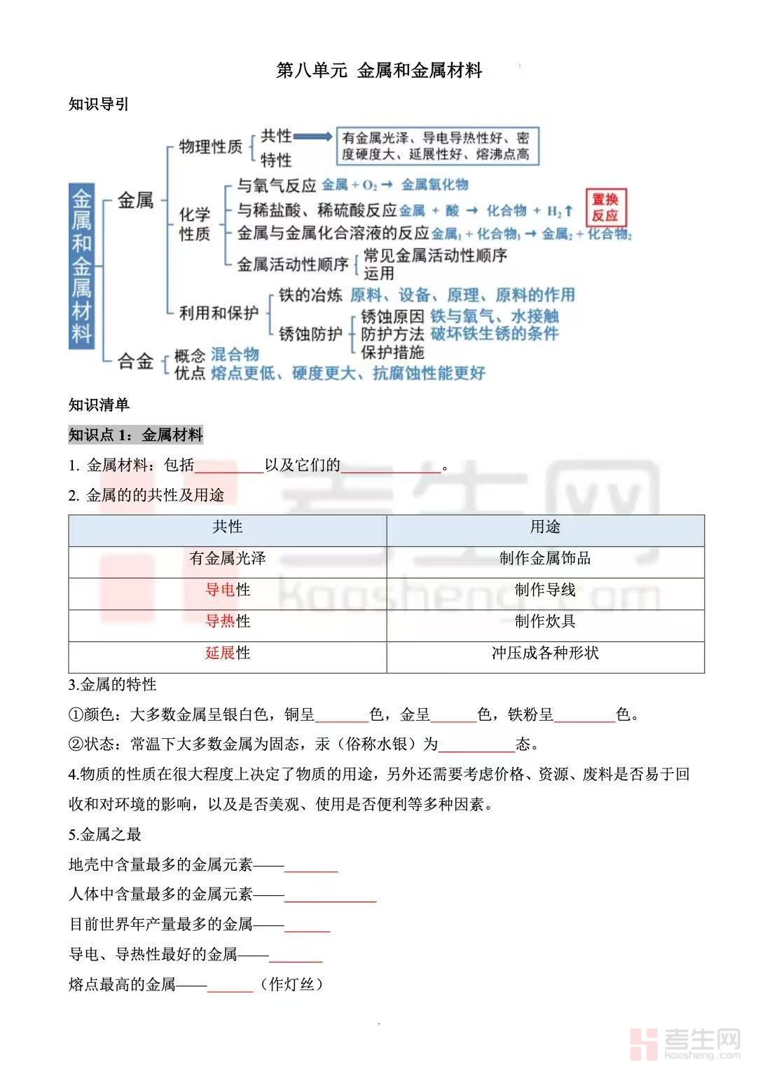 2025新版九年级下册化学(填空版)内容简介