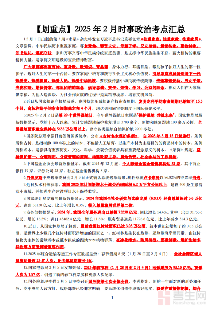时事政治是国考、省考行测常识判断与申论写作的核心模块,也是备考过程中易出现遗漏、难以系统梳理的内容。针对这一备考难点,特整理这份《公考时事政治考点汇总》,为大家提供系统的备考支撑,助力直击核心考点。