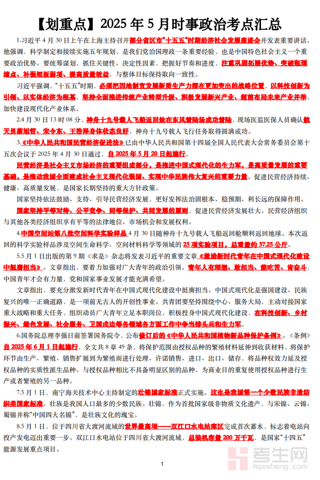2025年5月时事政治考点汇总