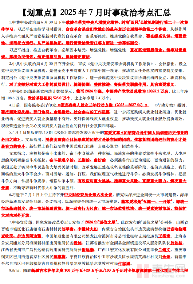 时事政治是国考、省考行测常识判断与申论写作的核心模块,也是备考过程中易出现遗漏、难以系统梳理的内容。针对这一备考难点,特整理这份《公考时事政治考点汇总》,为大家提供系统的备考支撑,助力直击核心考点。