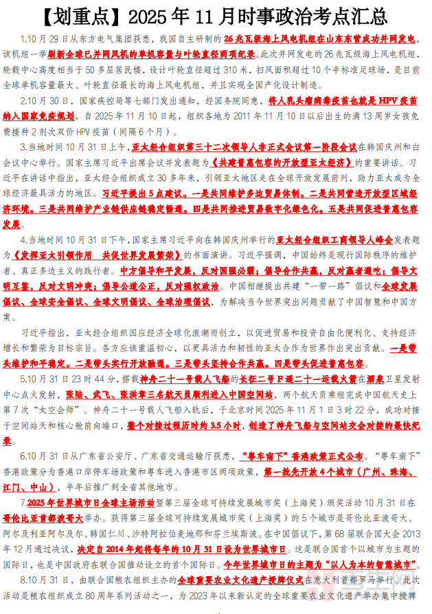 时事政治是国考、省考行测常识判断与申论写作的核心模块,也是备考过程中易出现遗漏、难以系统梳理的内容。针对这一备考难点,特整理这份《公考时事政治考点汇总》,为大家提供系统的备考支撑,助力直击核心考点。