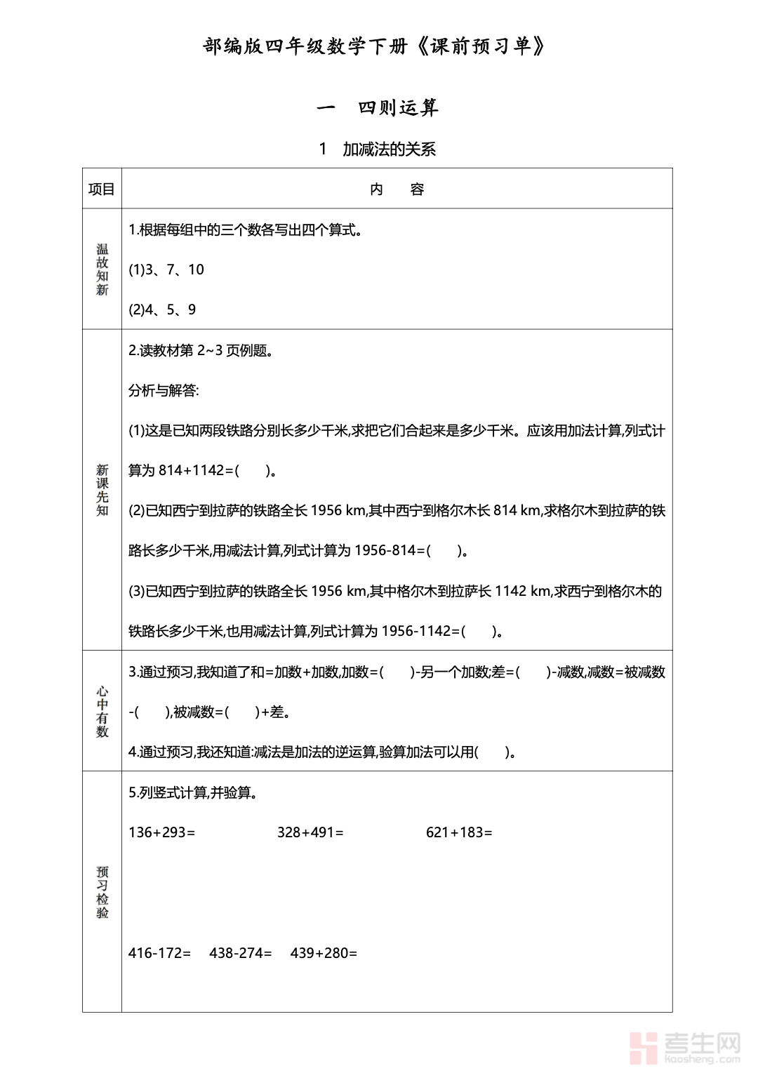 设计贴合四年级学生自主学习水平,语言简洁通俗、步骤清晰明了,无需家长过多指导即可独立完成。每单元末尾设置 “预习小结”,引导孩子自主梳理知识框架,培养归纳总结能力。通过这份预习单,孩子能提前熟悉新课内容,带着问题走进课堂,针对性突破薄弱点,不仅提升课堂吸收效率,更能培养自主学习习惯,为后续数学学习筑牢根基,轻松领跑四年级下册数学学习!