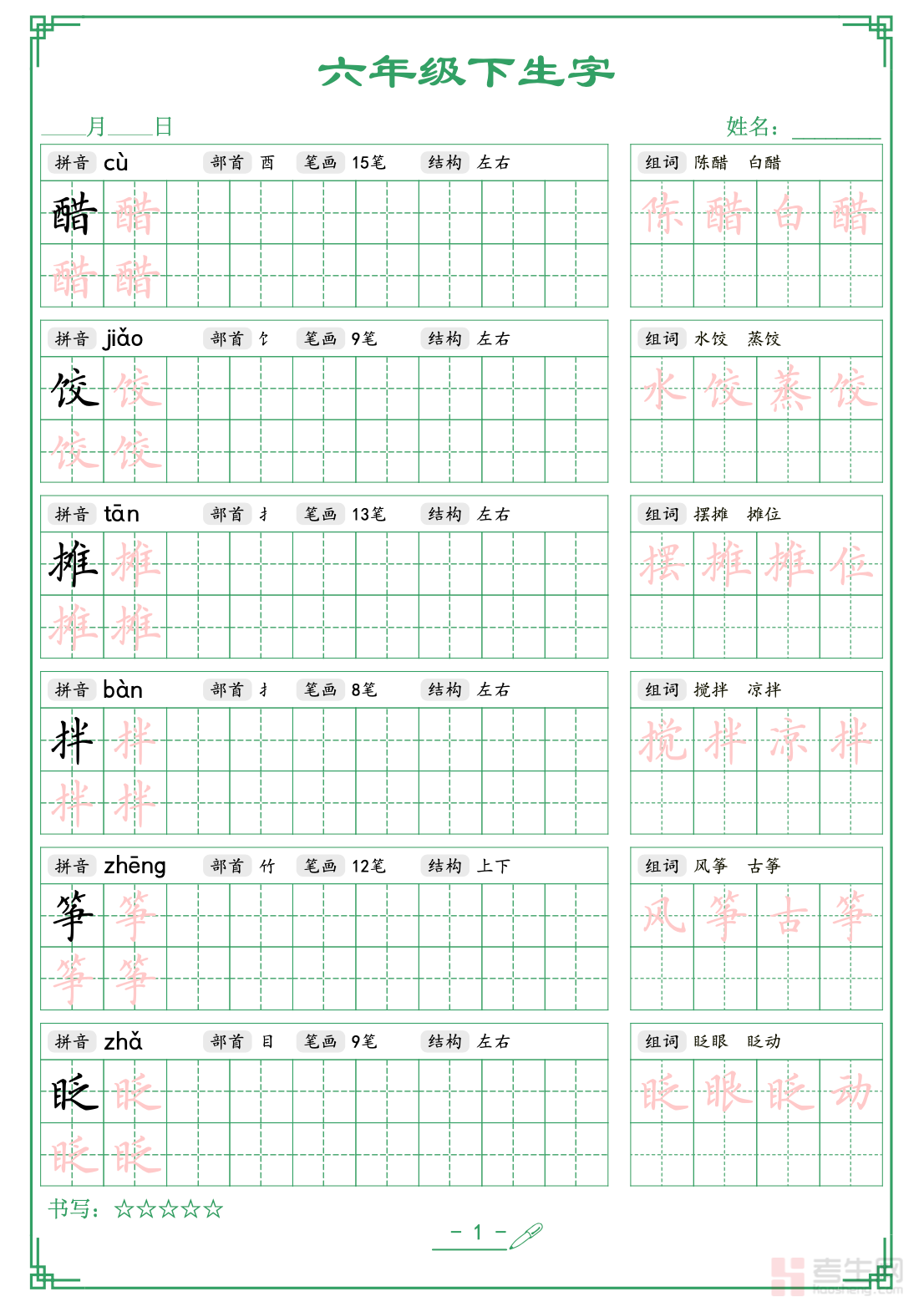 每日一刻钟临摹练习,既能练就一手规范好字,为小升初卷面加分,又能扎实掌握下册生字词语,筑牢语文学习根基,让书写与积累双提升,轻松应对六年级下册课堂检测与小升初语文考查!