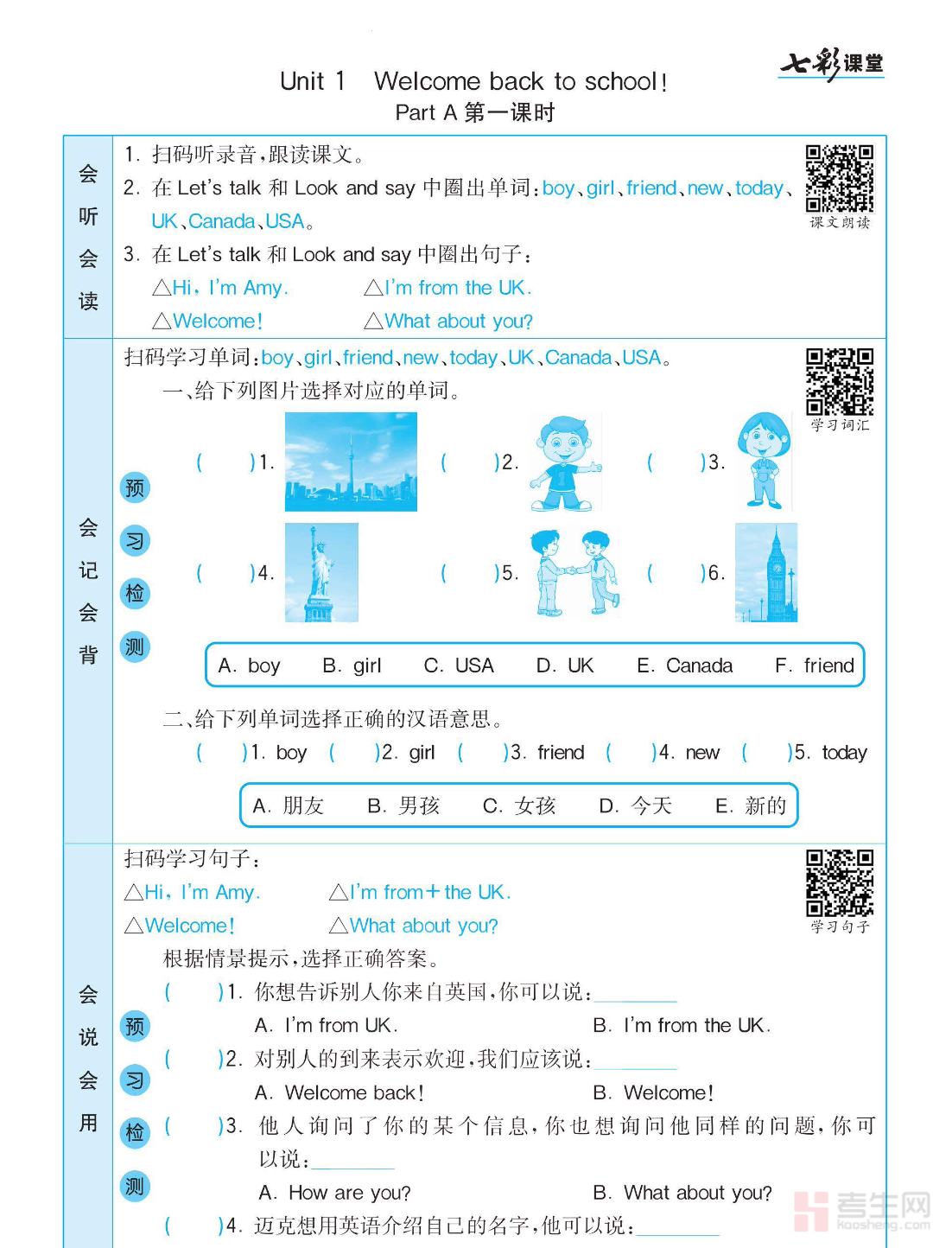 卡片式设计排版清晰,重点内容醒目标注,可直接抄写、背诵,既能帮孩子提前熟悉新课词汇和句型,搭建课堂学习基础,又能培养规范的英语预习习惯,让孩子带着知识点走进课堂,提升听课效率,轻松掌握每课核心内容。