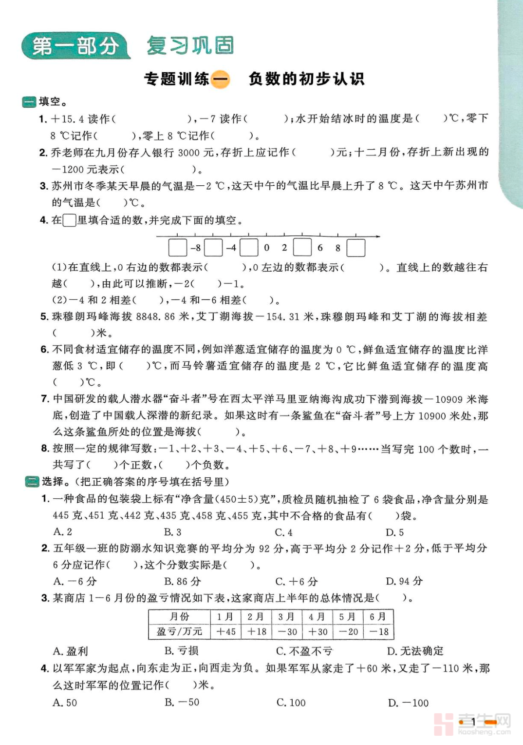 阳光同学寒假衔接苏教数学五年级:温故知新,无缝衔接新学期