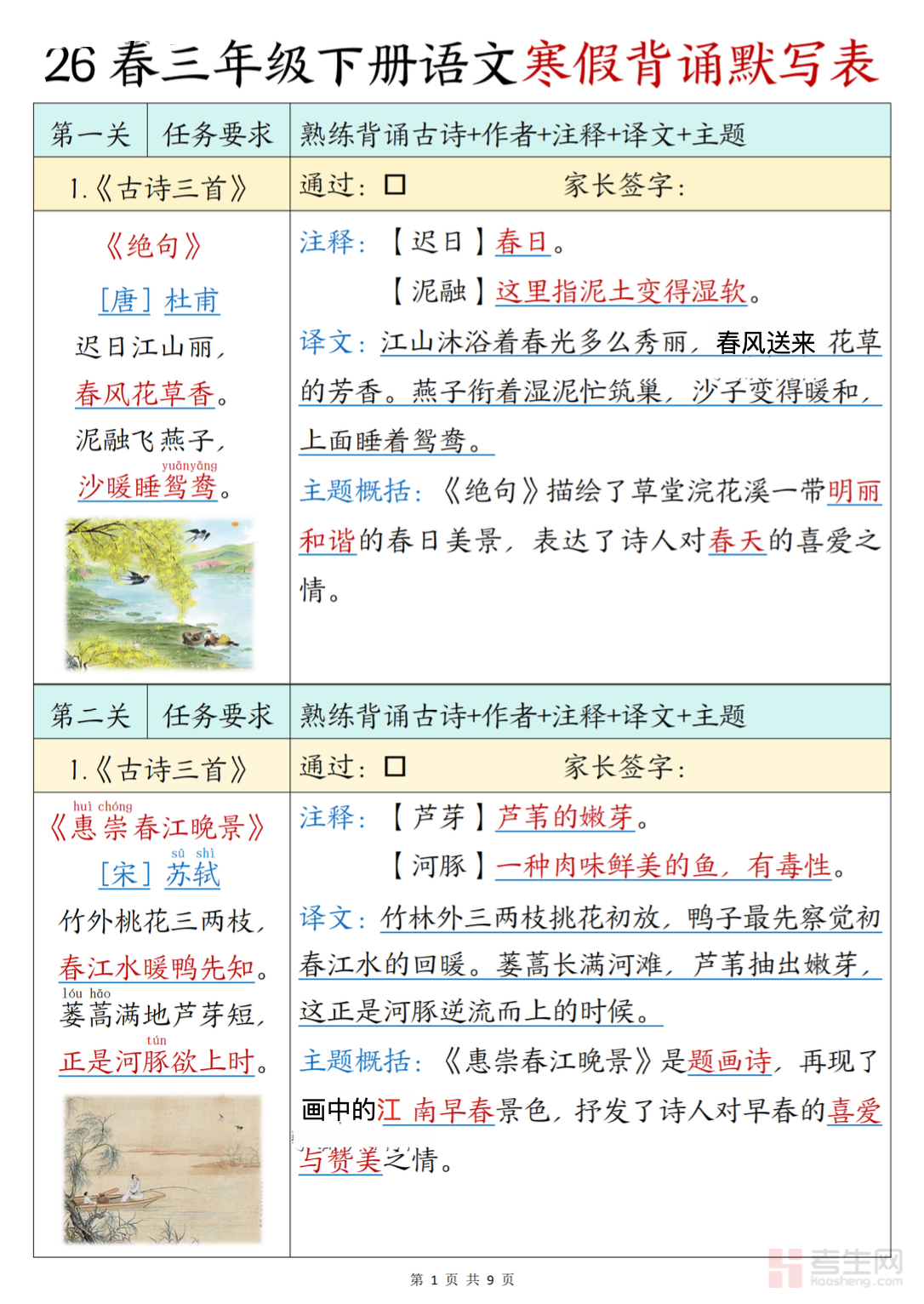 三年级(下)语文寒假晨诵晚读:晨诵积累夯基础,晚读悦读养语感