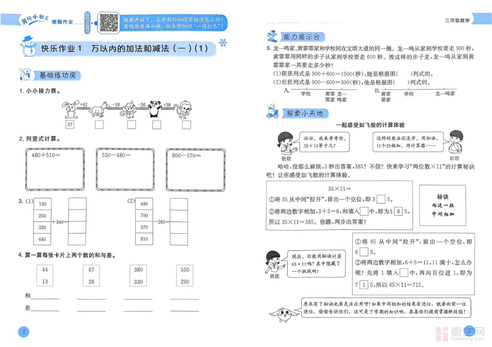 《黄冈小状元寒假作业》数学 3 年级下册(人教版):寒假精练夯基础,衔接新知轻松学