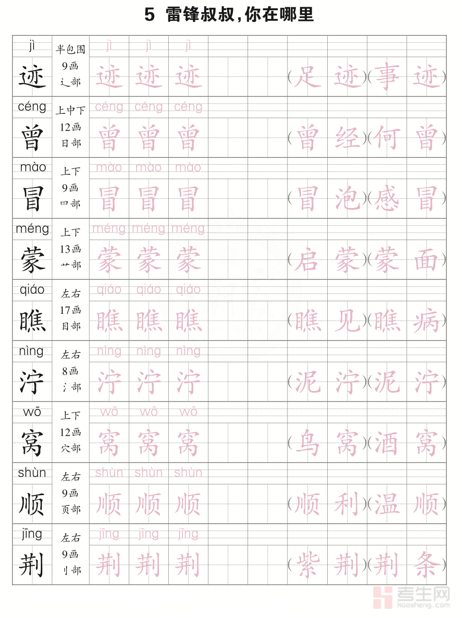 2026 年(下册)人教版 2 年级语文会认字描摹帖