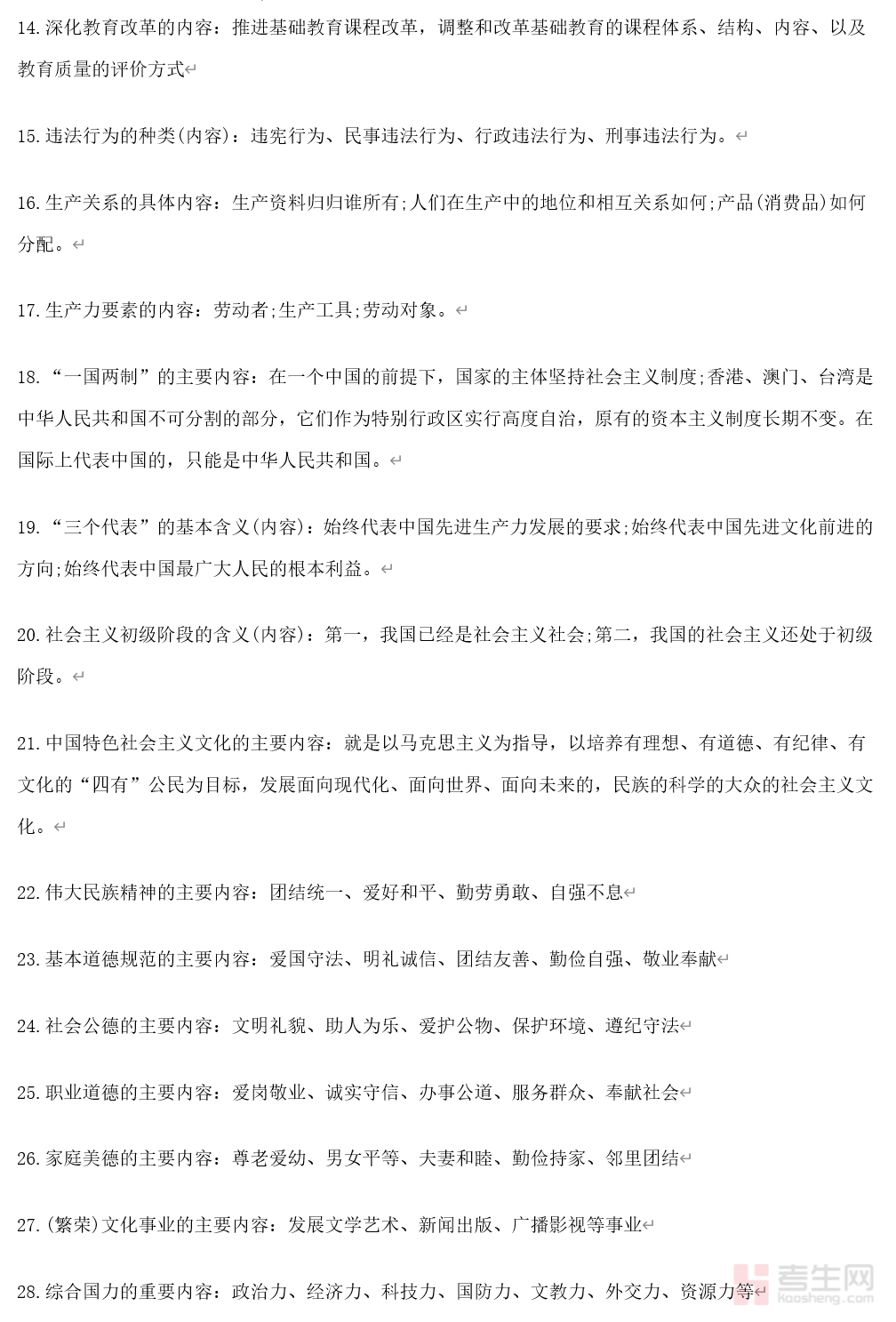 本文档为初中政治(道德与法治)知识点归纳汇总备考资料,全面覆盖初中全学段核心知识点,严格贴合教材体系,按课程重难点、高频考点分模块梳理,涵盖道德修养、法治观念、国情国策、社会责任等核心模块。内容兼顾基础性与备考性,精准提炼教材核心考点、易错点、易混点,剔除冗余内容,逻辑清晰、条理分明,既便于初中生日常夯实基础、梳理知识框架,也适配月考、期中期末考及中考备考,可直接用于背诵记忆、错题复盘、考点复盘,助力学生快速掌握核心知识点,提升备考效率,轻松应对各类政治考试。