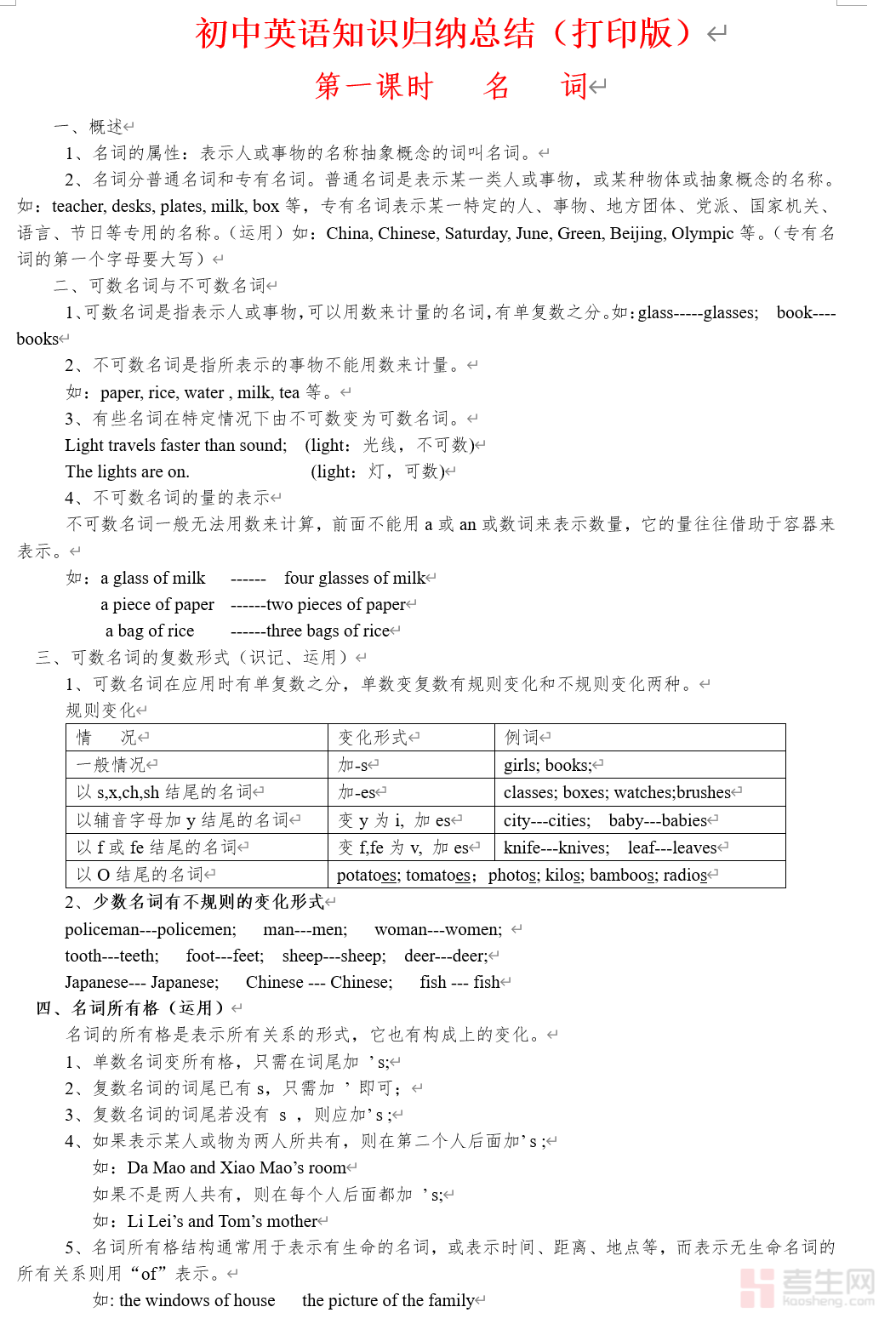 本文档为初中英语知识点归纳汇总备考资料,严格遵循初中英语课程标准,贴合七至九年级英语教材体系,全面覆盖初中英语核心知识点,兼顾基础性、系统性与应试针对性,是初中生日常学习、查漏补缺及中考备考的必备资料。